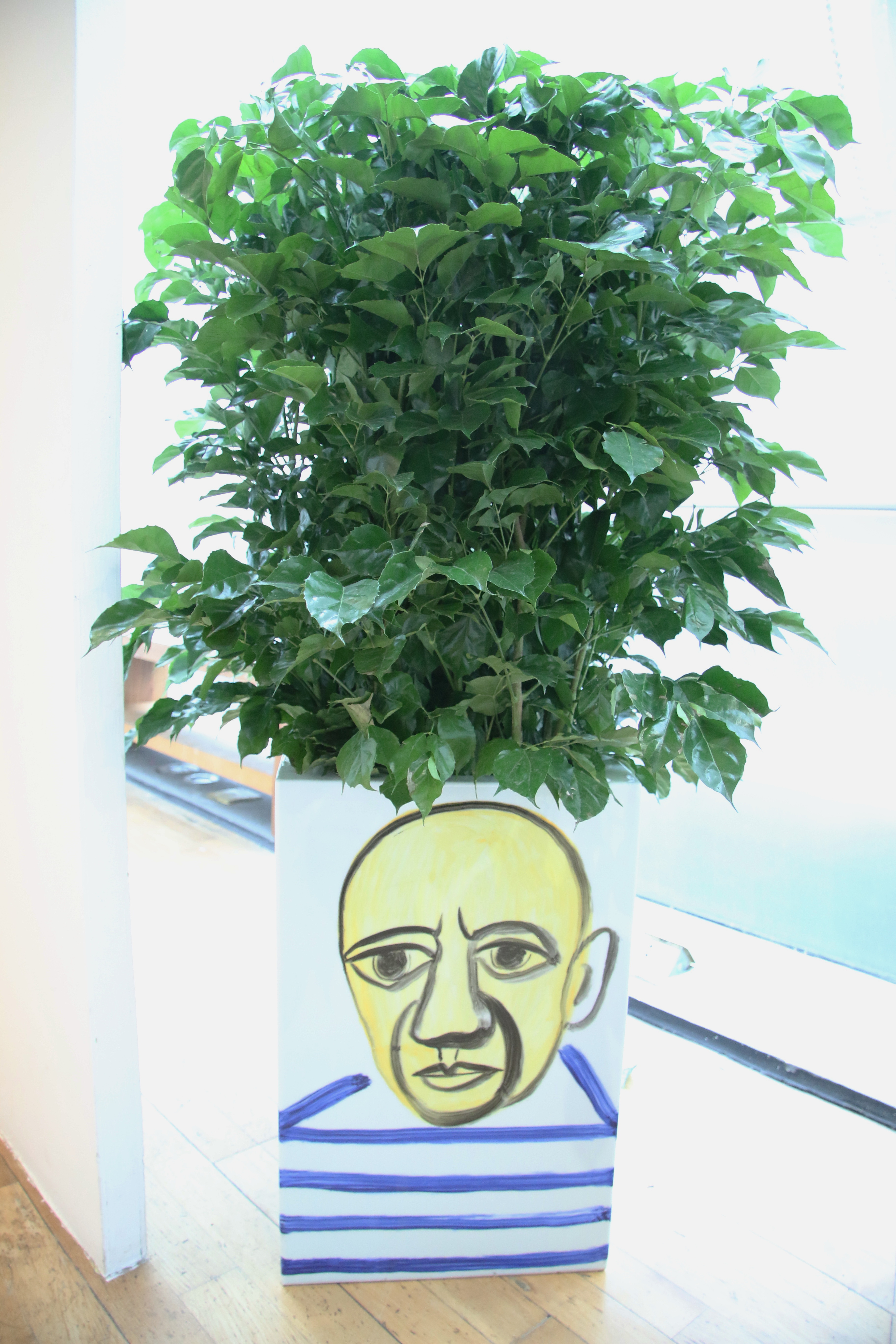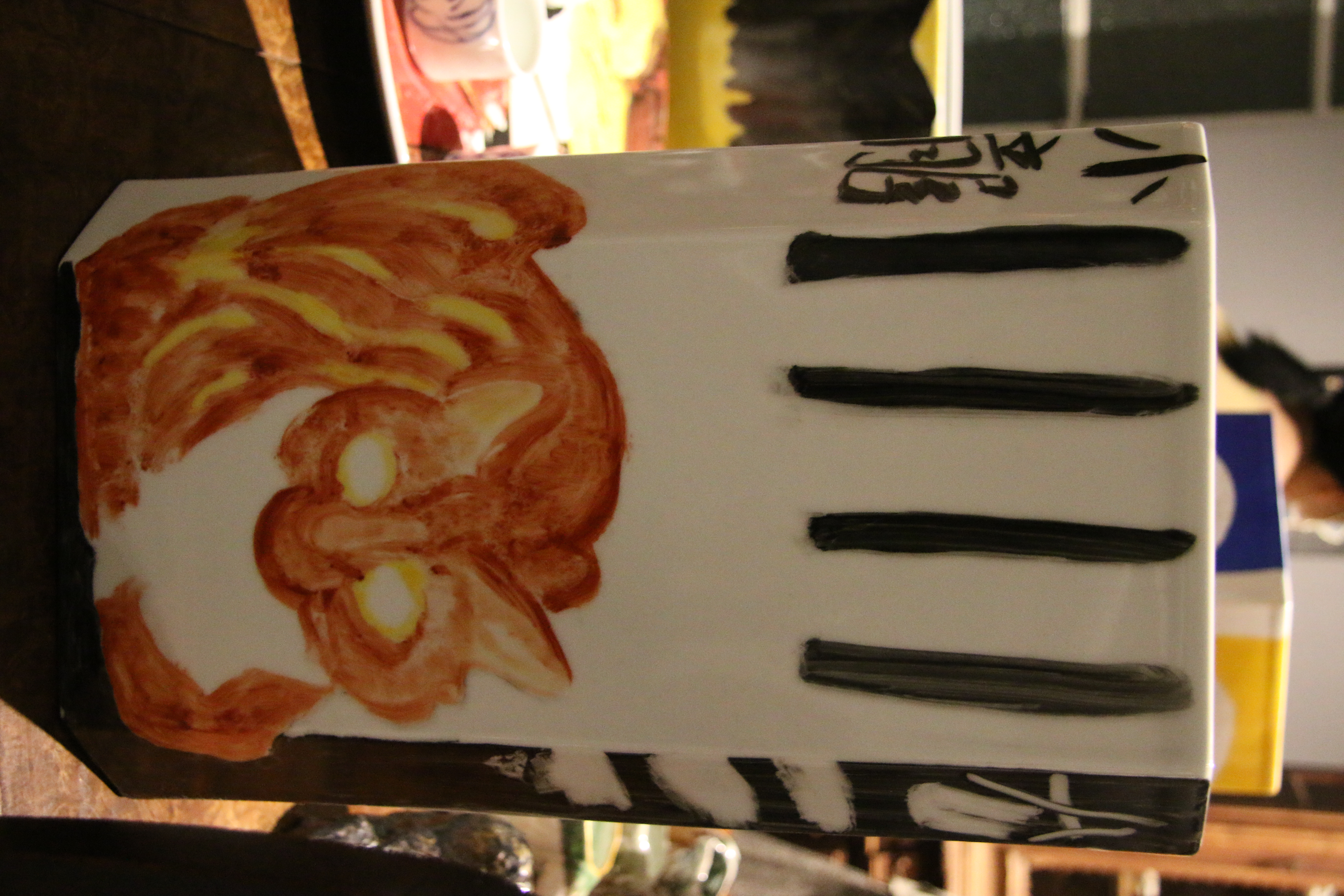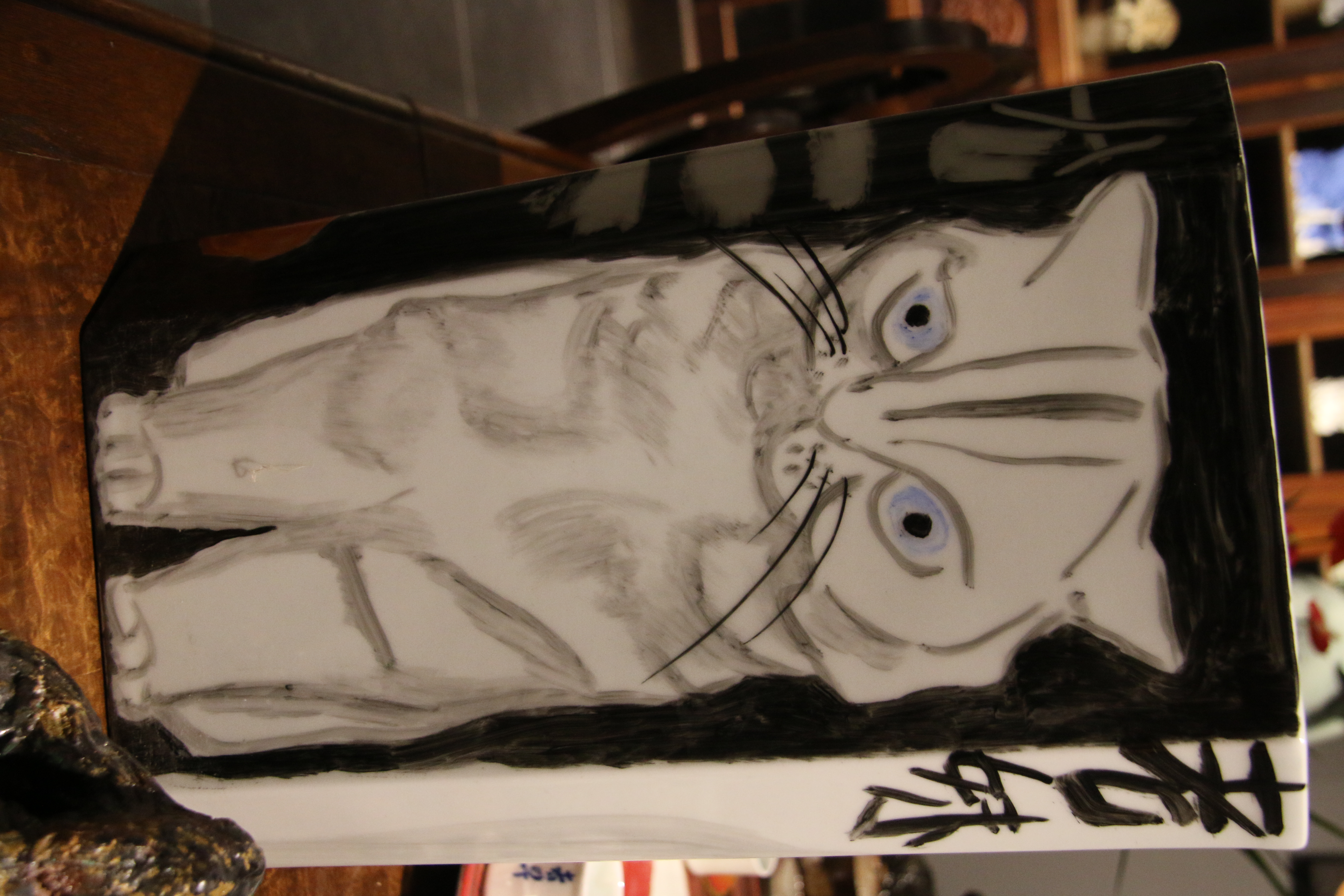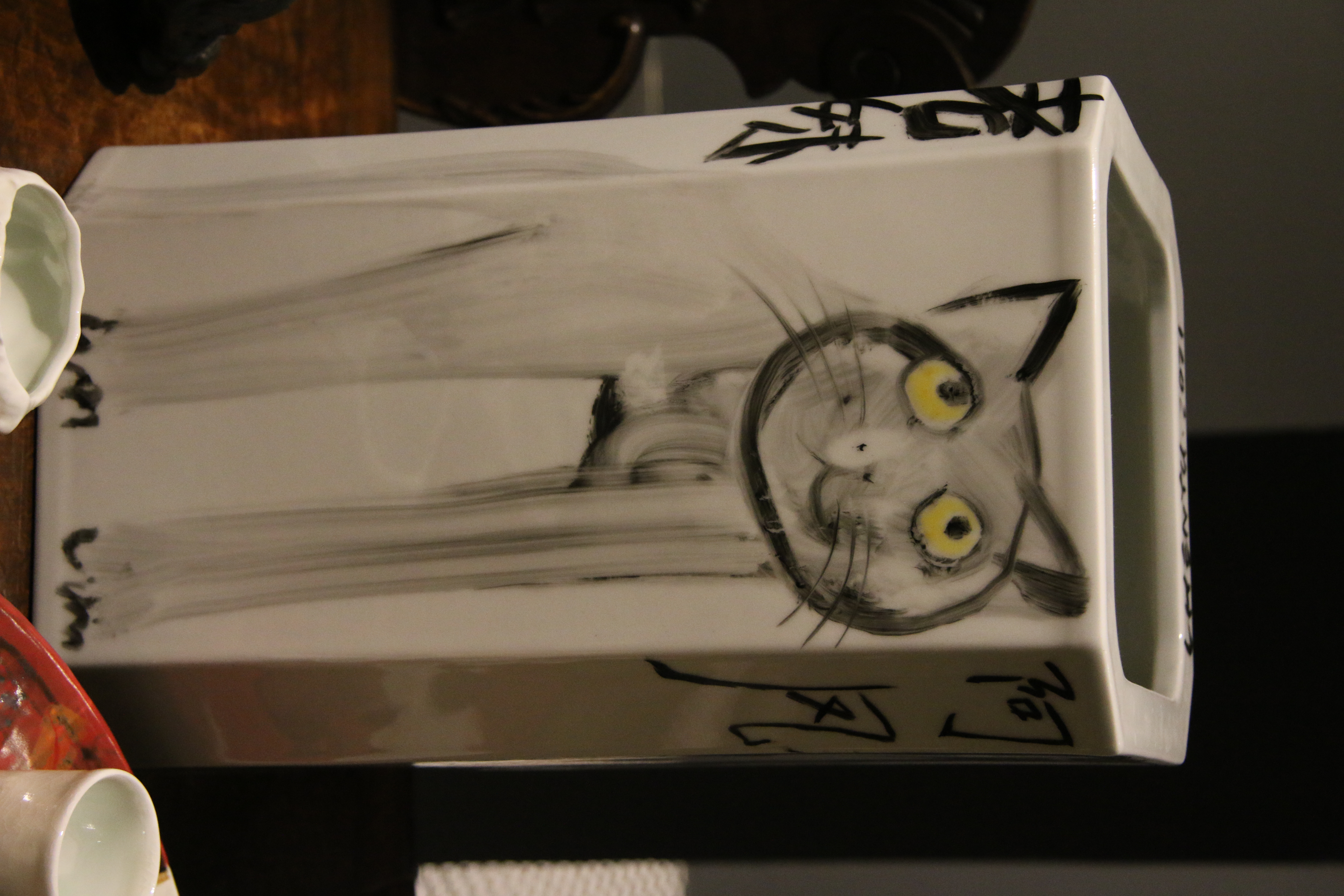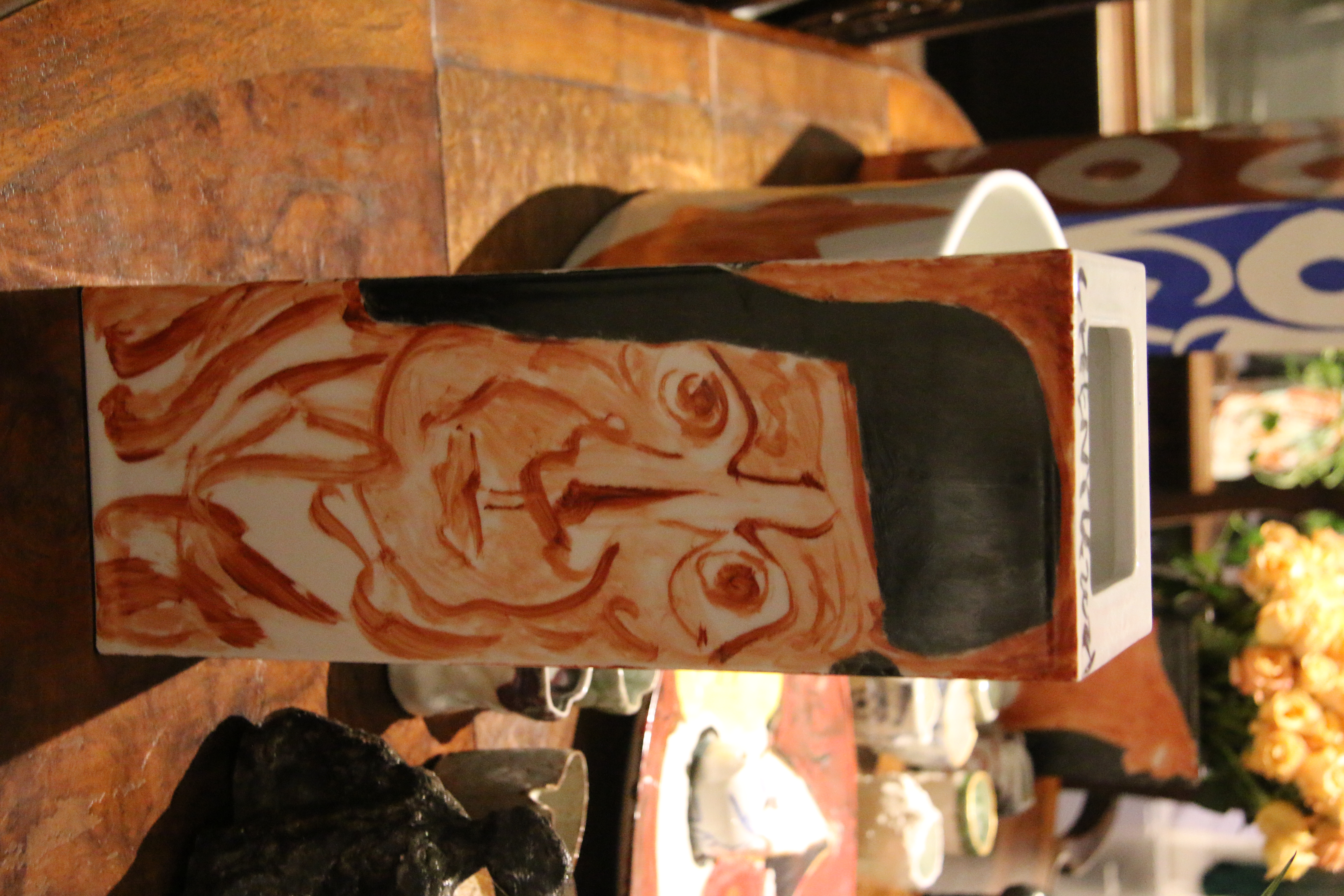 人可艺术的六个展厅,展出陈雨创作的毕加索系列新作共计1000余件,囊括瓷板、瓷盘、镶器、陶塑、瓷器、杯盏等多类艺术表现形式。一个个变形的陶塑面具、毕加索肖像瓷瓶、静物瓷板、生肖瓷盘,甚至陈雨养的四只猫都画在了瓷瓶上,形成有趣的变形。