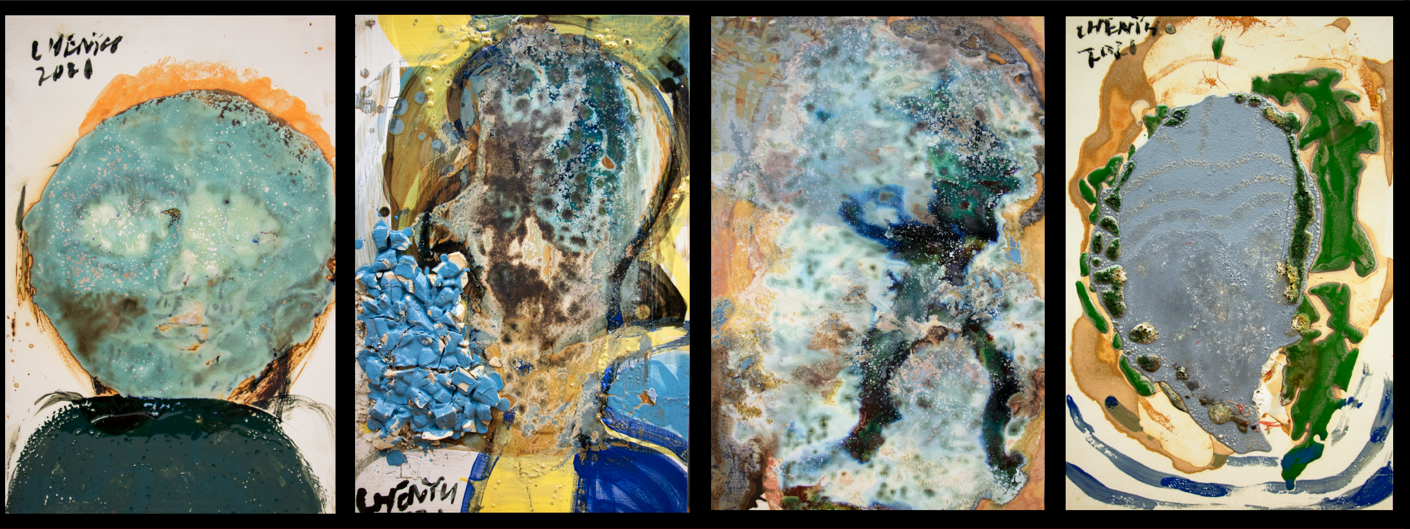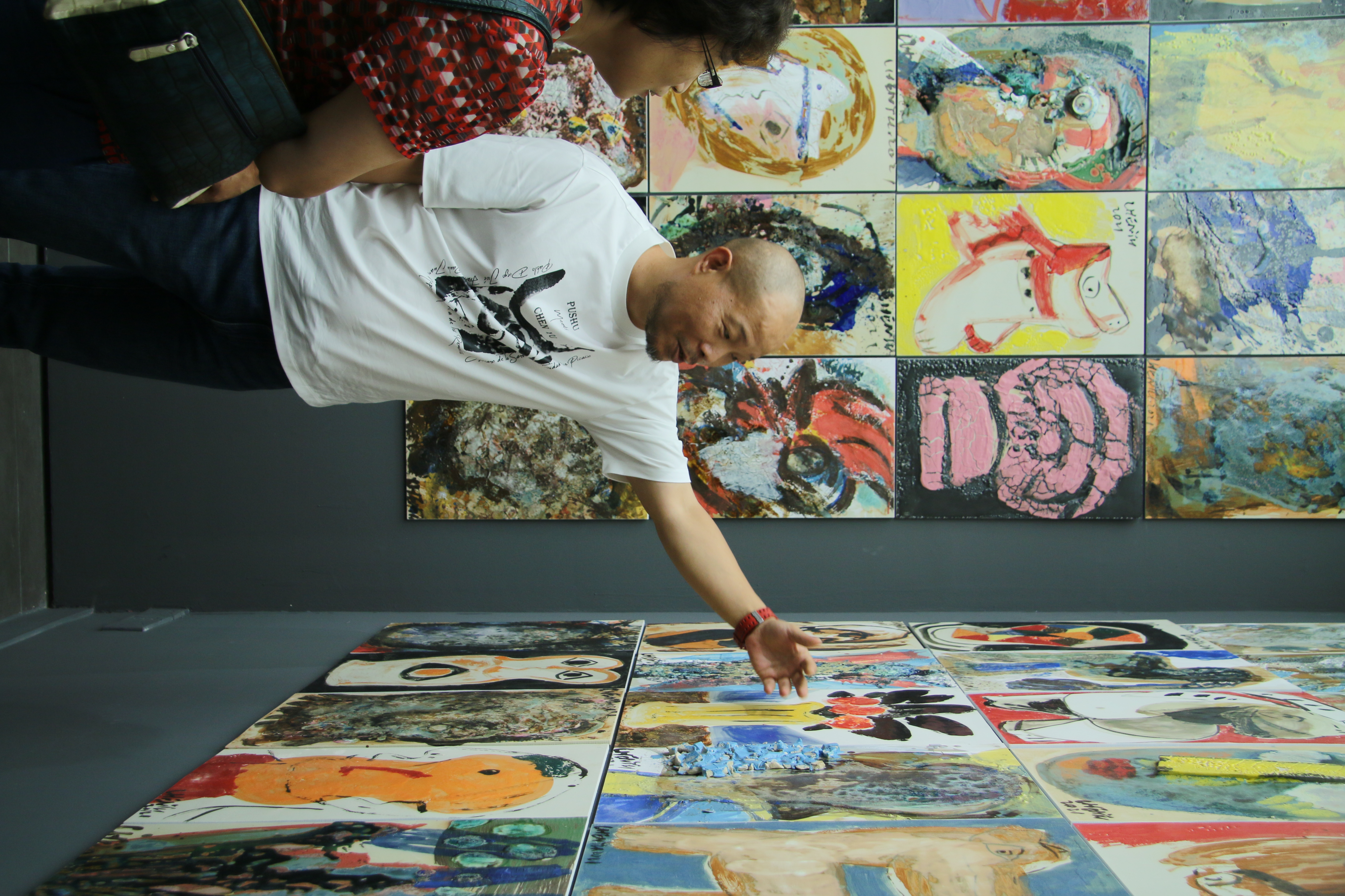 陈雨说:“现代艺术第一个让我敬仰的艺术家是梵高,第二个敬仰的就是毕加索。”如果说“100个梵高”展,他是向艺术的纯粹致敬,那么“1001个毕加索”展,他是用毕加索的精神来创作。什么是毕加索的精神?就是解构、重组、变形、创新。而陶瓷艺术,让陈雨找到了油画、水墨之外新的艺术语言,他从捏泥巴开始,被陶瓷所吸引,发现陶瓷有多种形式可以尝试。比如传统的陶瓷艺术分釉上彩、釉下彩、釉中彩,但陈雨并不按传统出牌,他直接用釉彩作画,随心所欲地把破碎的瓷片镶嵌在瓷板上,经过烧窑后出炉的釉色和窑变效果完全出乎自己的意料,给他带来莫大的创作乐趣。