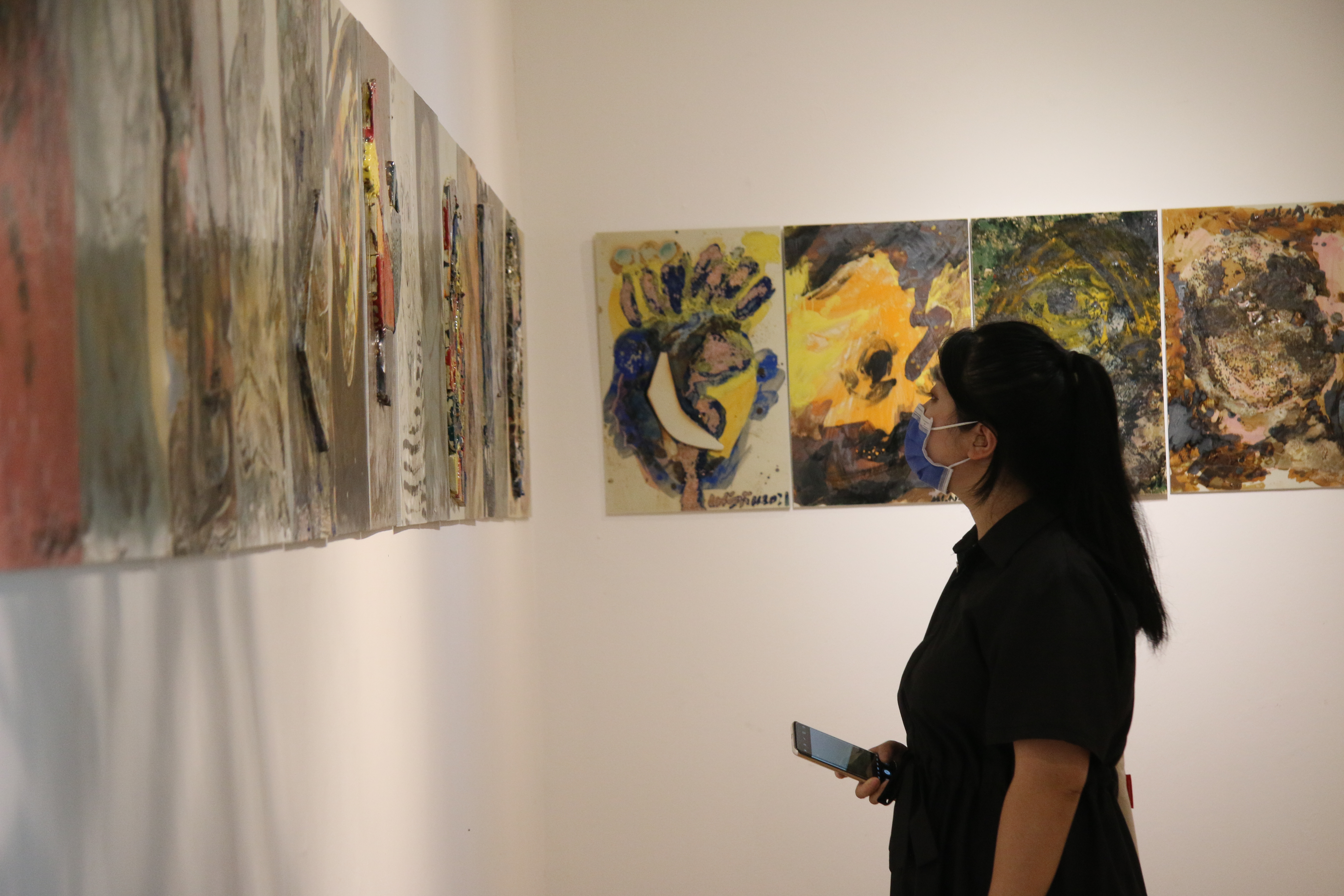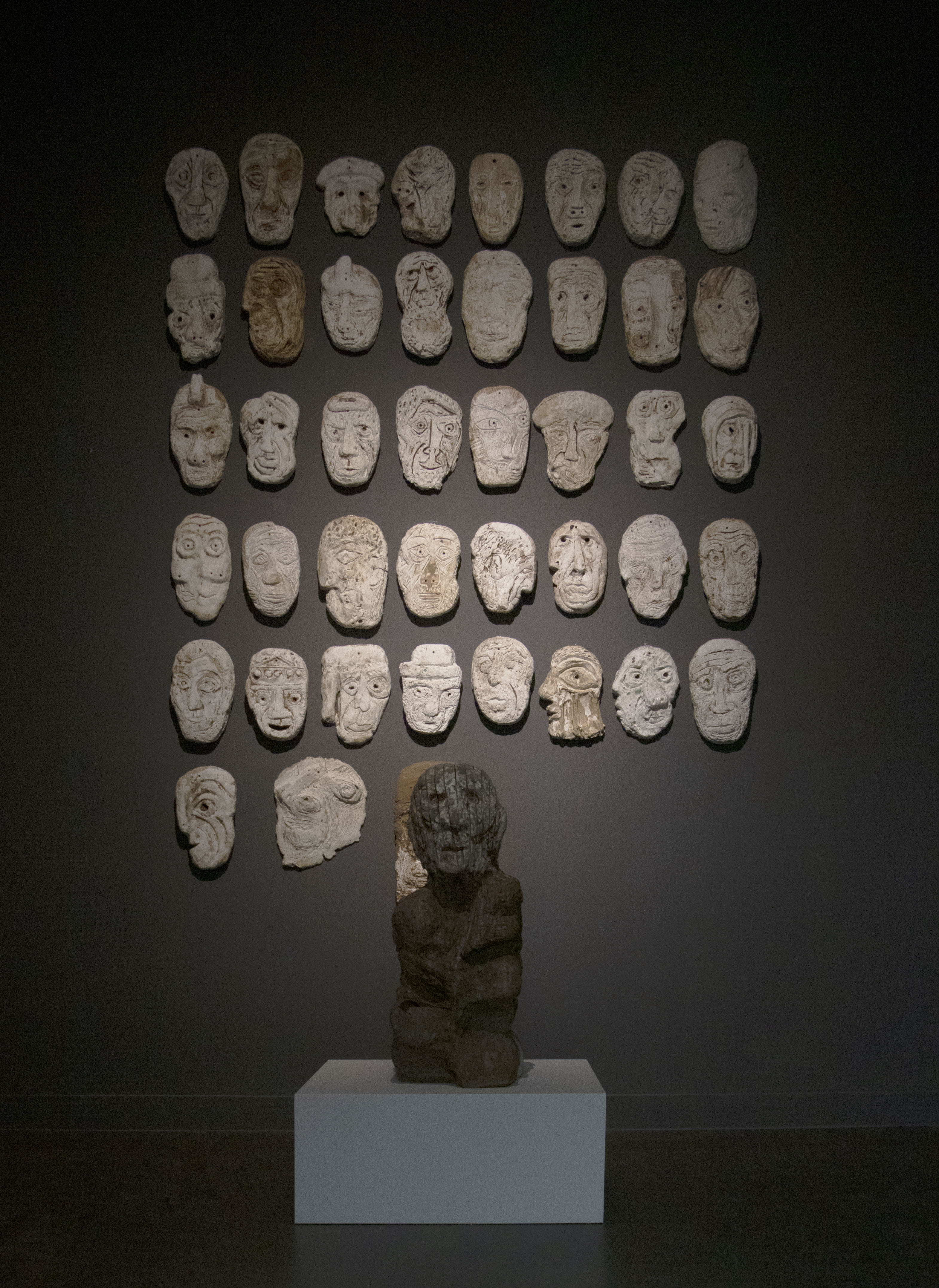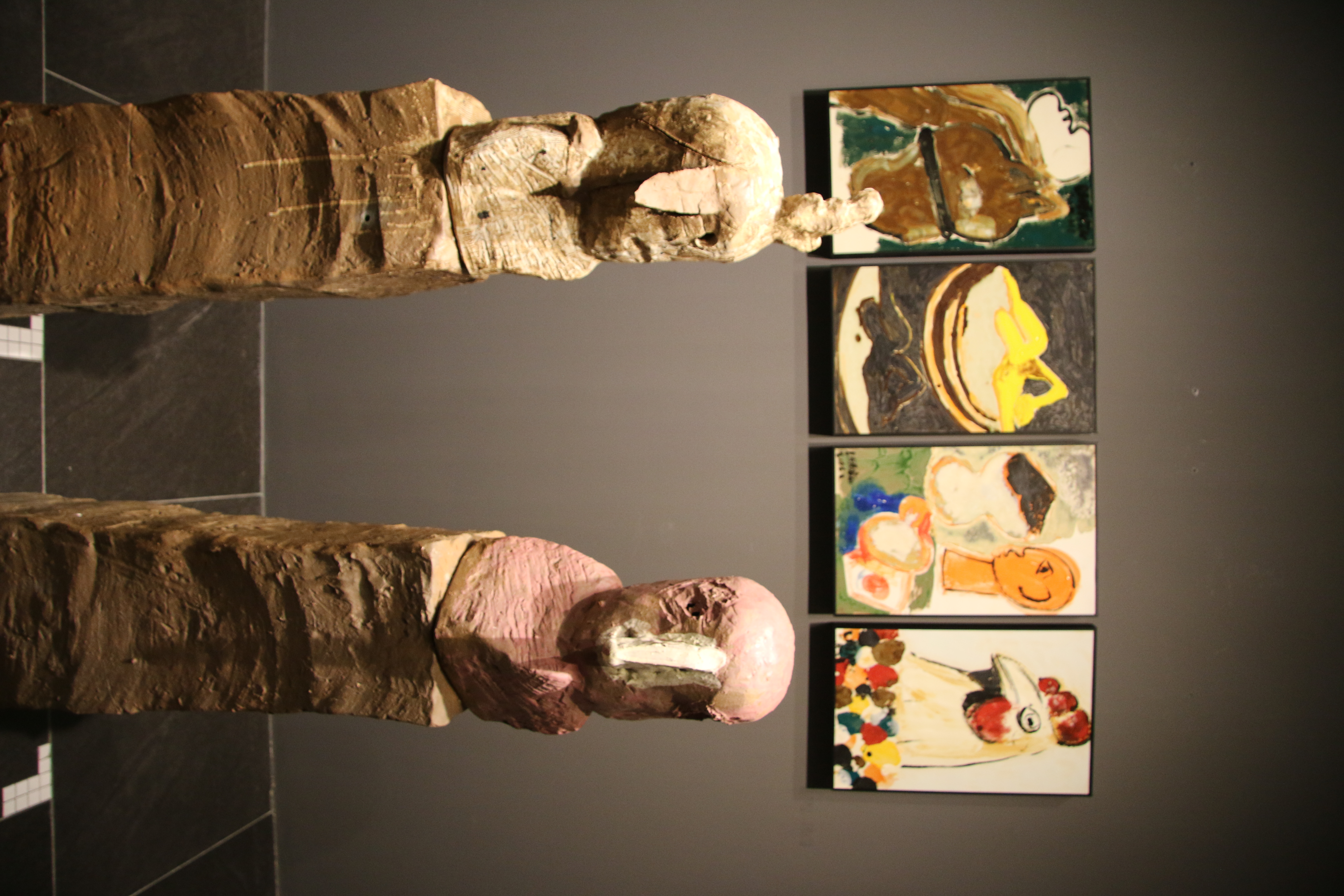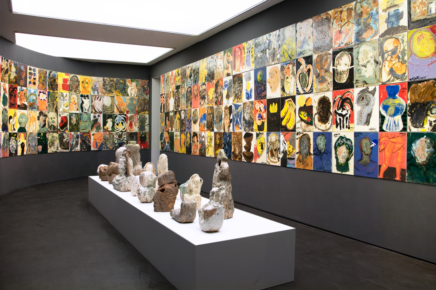 这次的陶瓷艺术大展,是陈雨在近六年的艺术实践中,将水墨的书写性、写意性与油画的色彩感知力和造型力交融于陶瓷之上,突破了单一绘画材料语言的局限。其中不少雕塑作品都指涉了毕加索立体主义时期创作的灵感来源——原始雕塑。“面具”系列共43件,陈雨用陶塑再现毕加索面具般的面孔,凸显稚拙古朴的野生力量。多组雕塑系列作品有机结合古埃及狮身人面像与中国传统石狮子的造像艺术、非洲雕塑艺术与中国佛像艺术,形成兼收并蓄的统一风格。