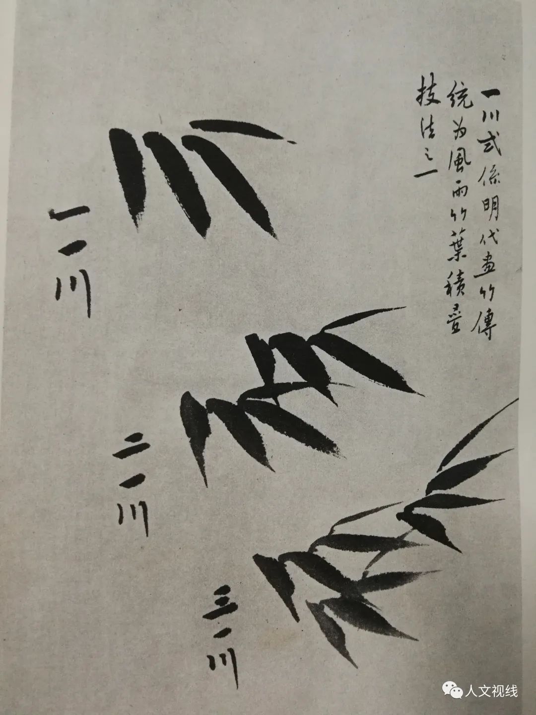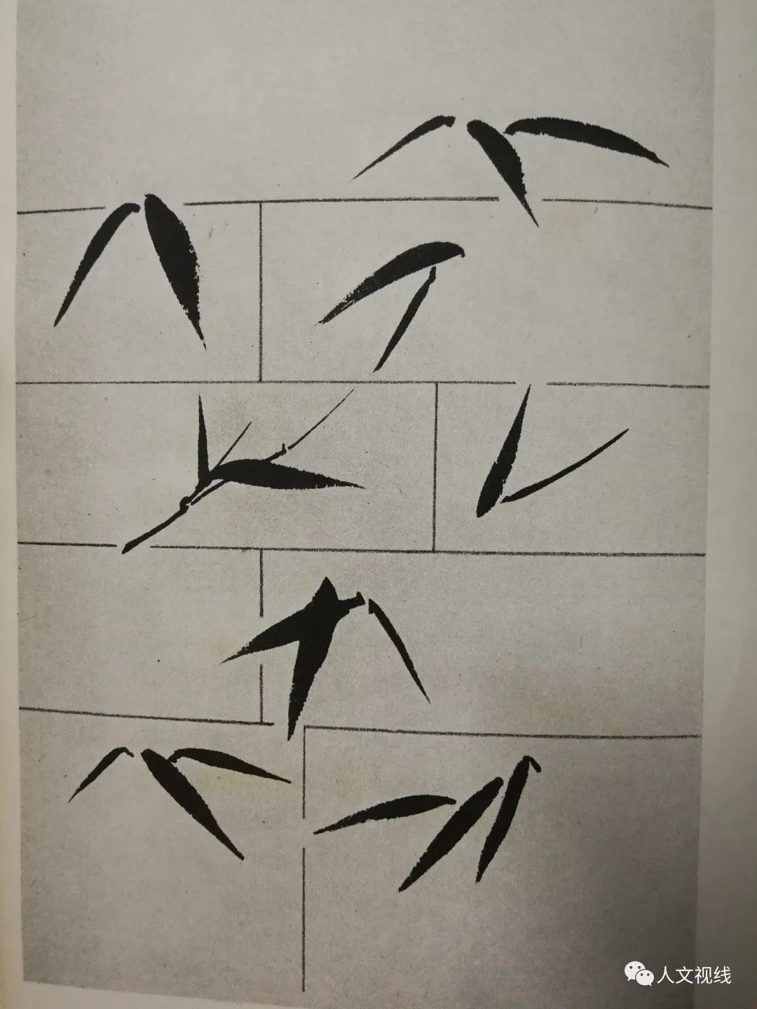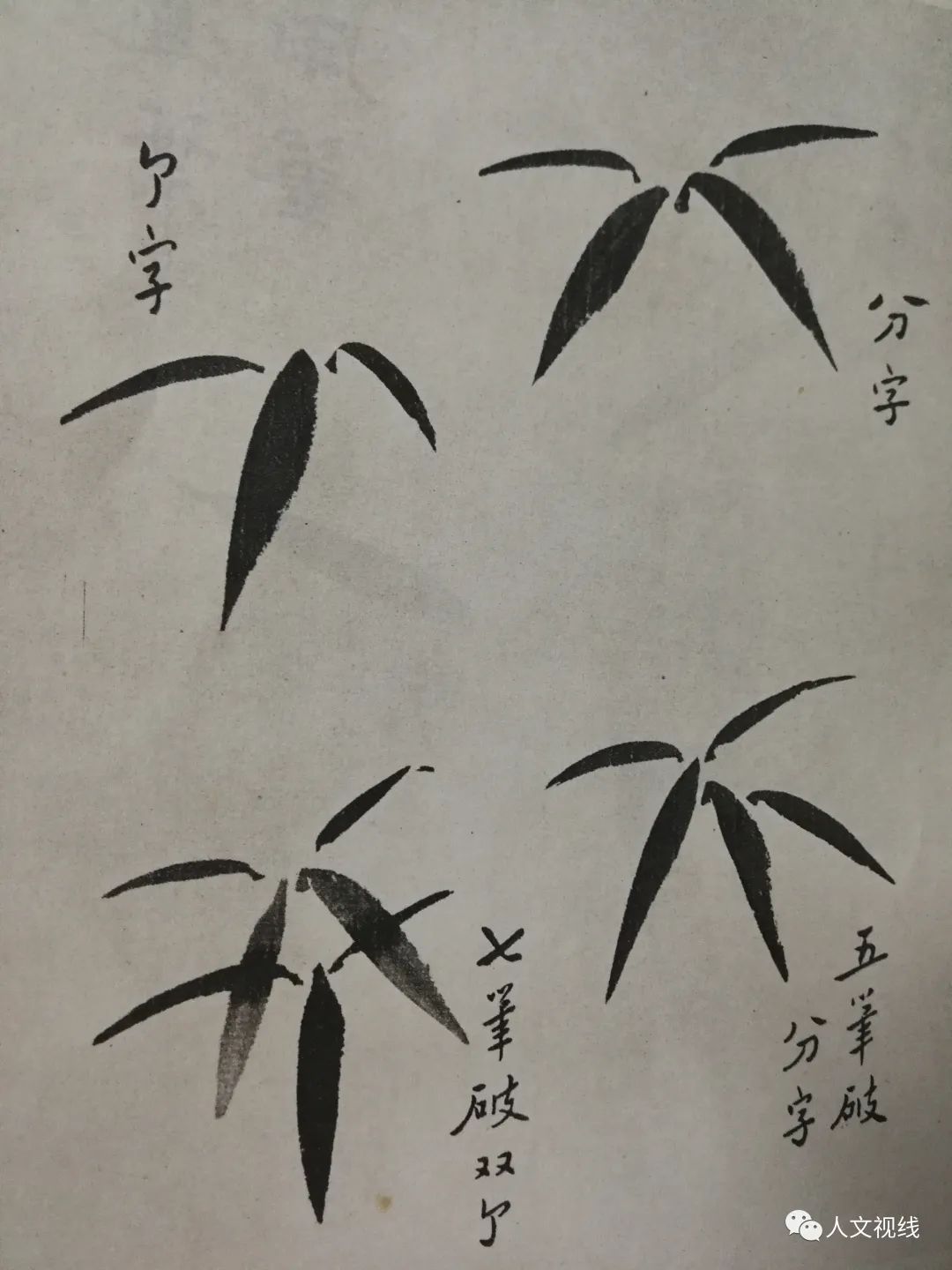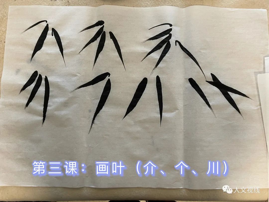竹叶个字,介字,分字,川字,有交叉,有组合,有疏密。
