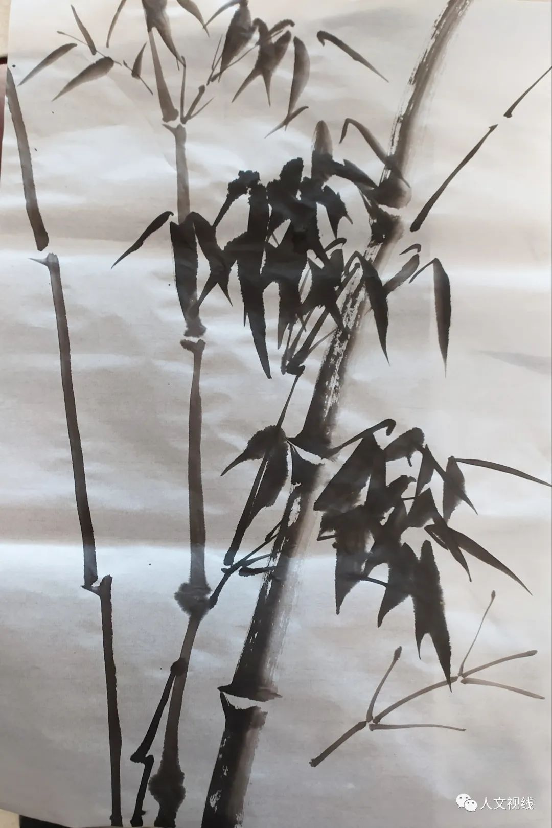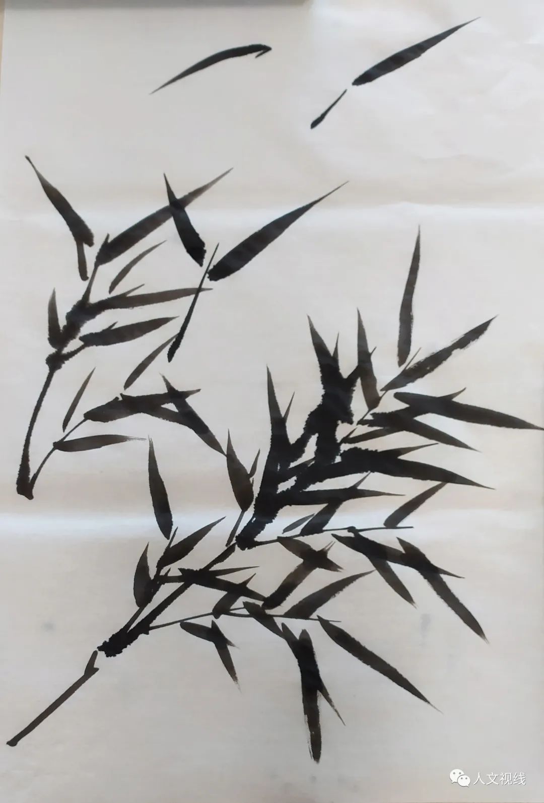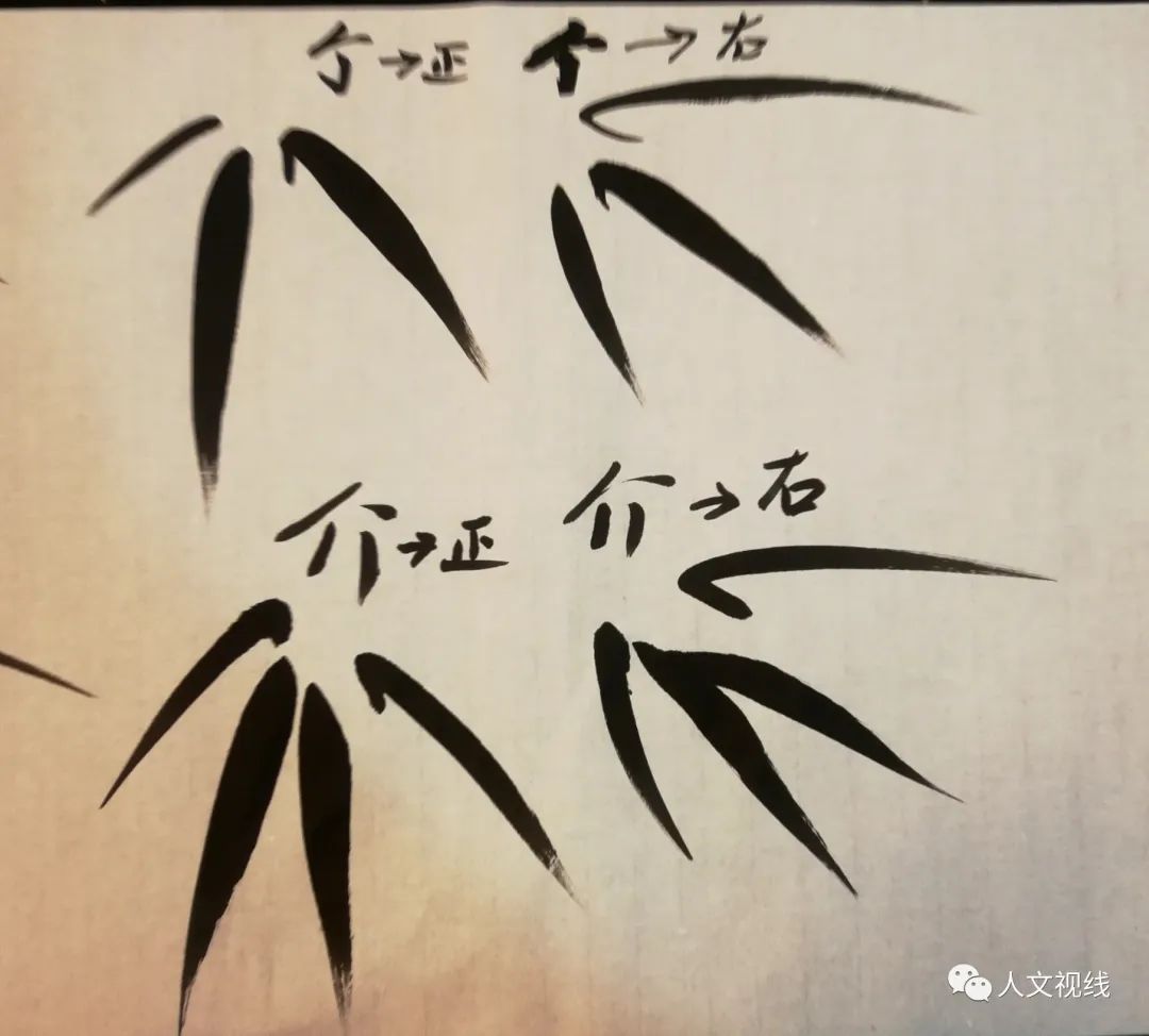 风竹,风吹来的感觉。一根竹子上的叶子要一个方向,不能散开,要聚起来,不能散沙。