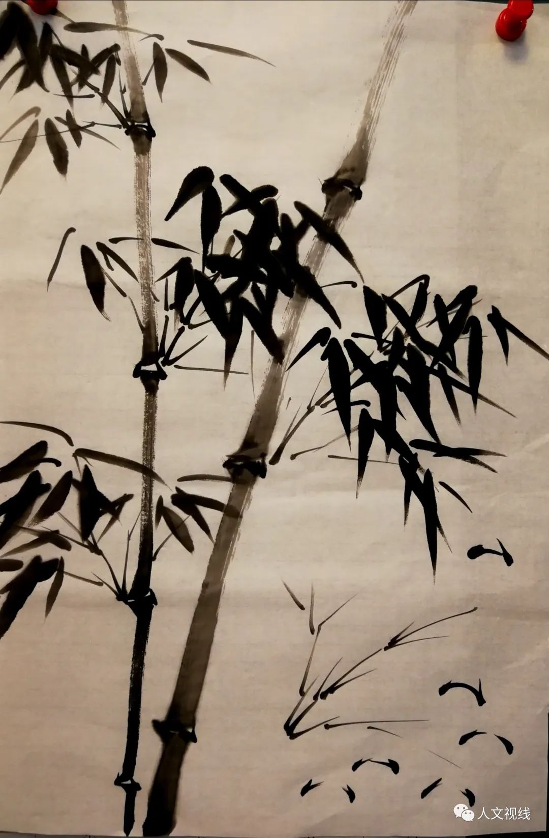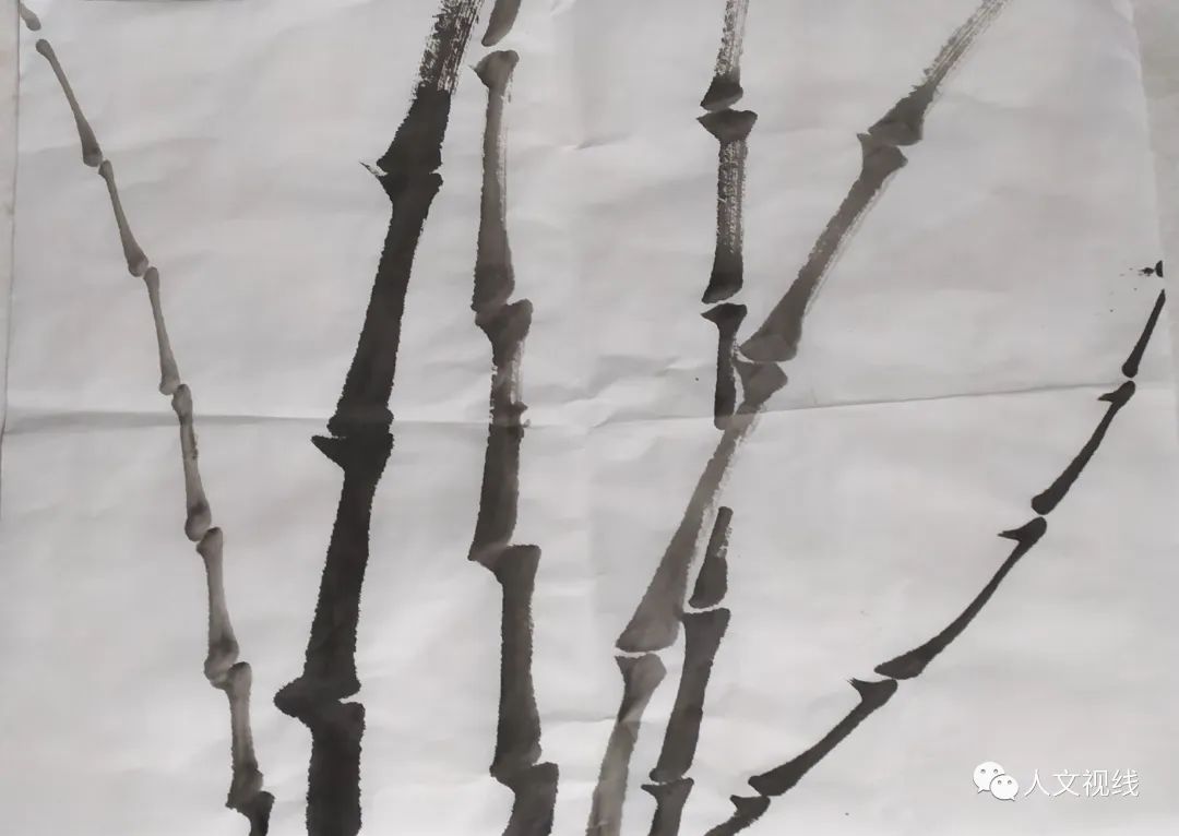 竹竿上浓淡枯湿都要体现出来。用笔要沉着痛快。