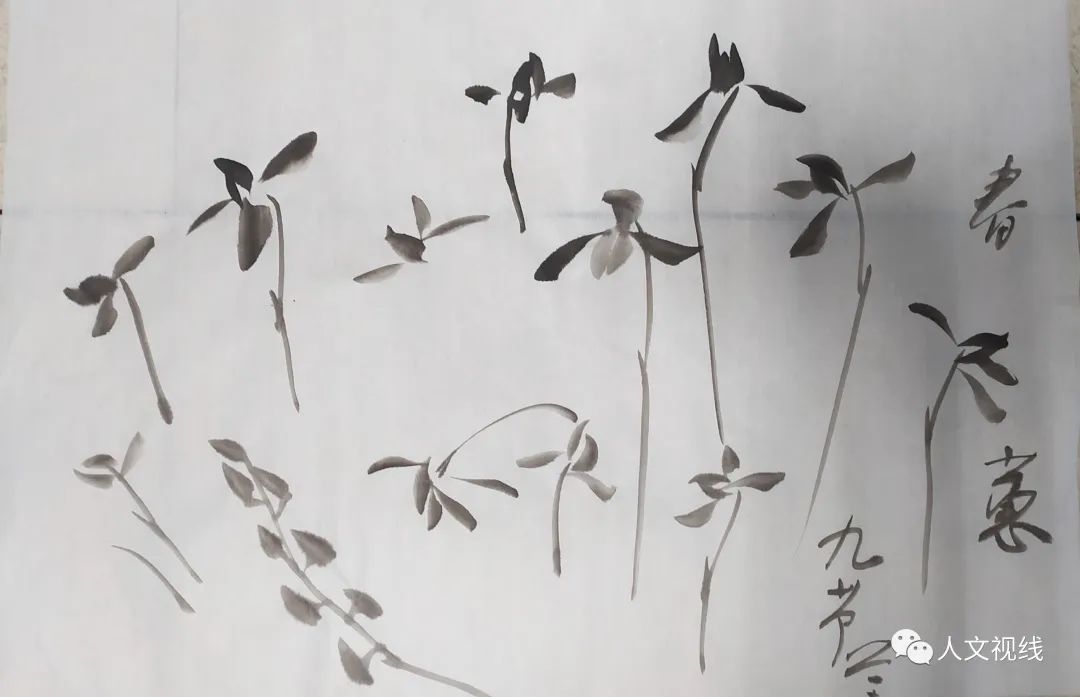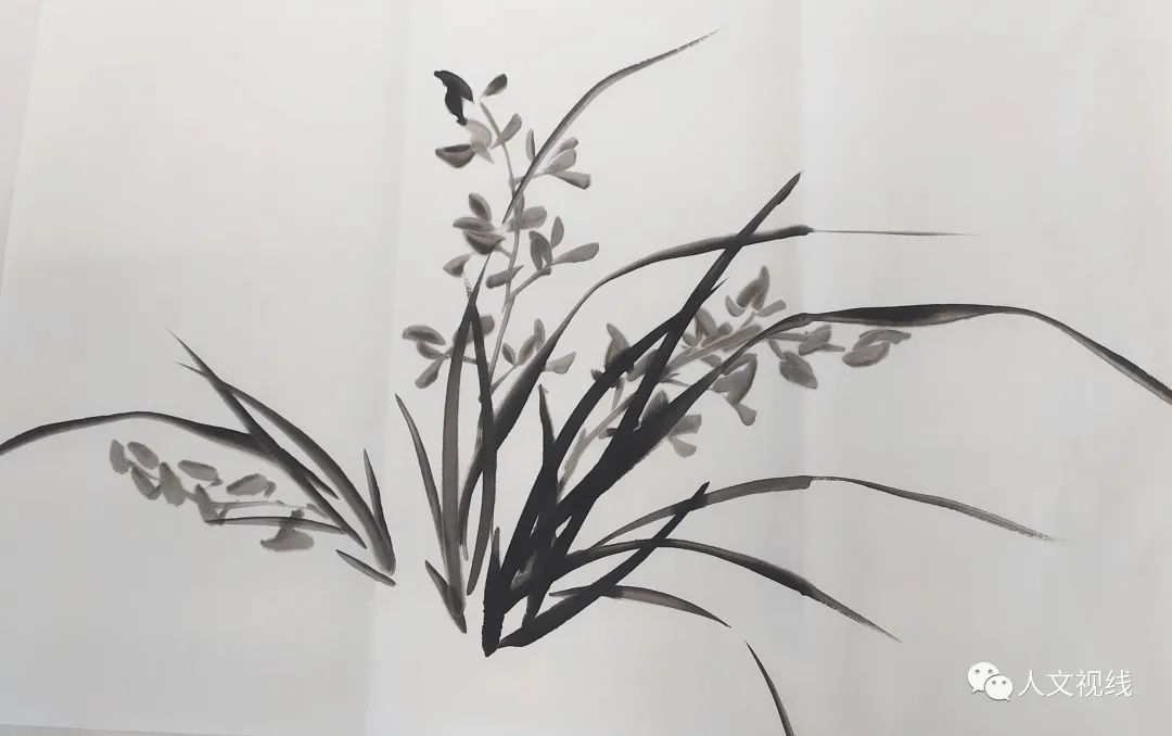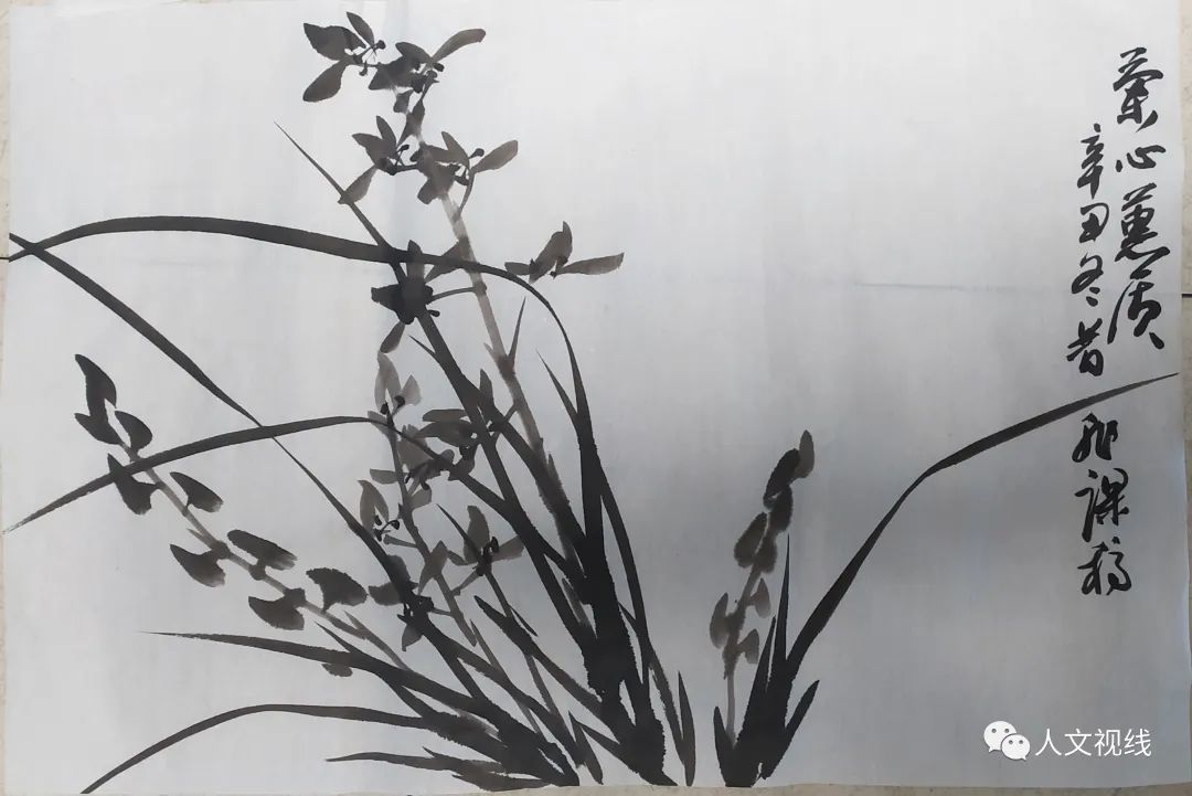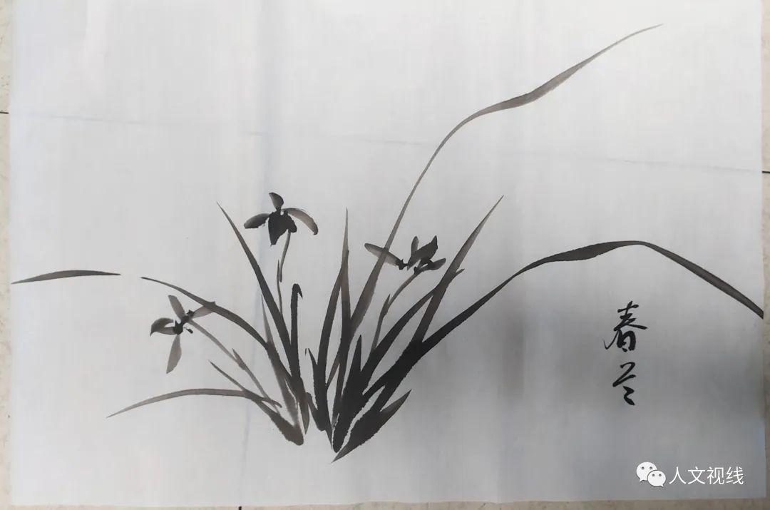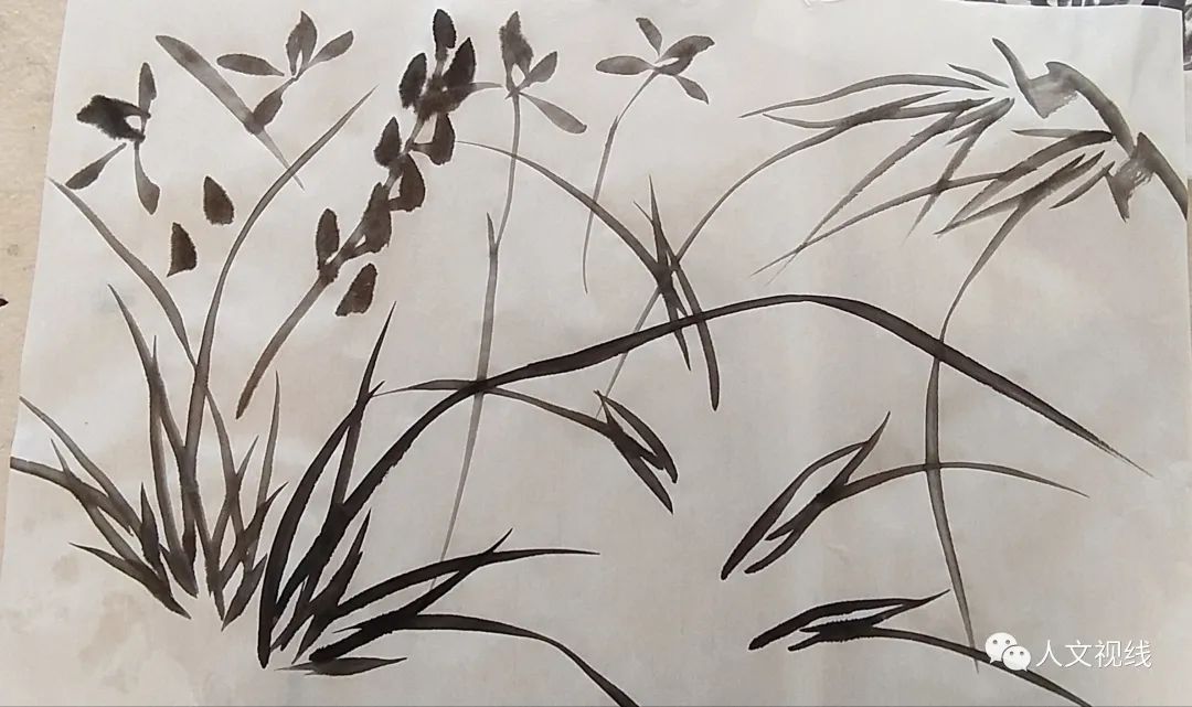 蕙兰也叫九节兰,春兰是一茎一兰。画兰花的用笔和画竹叶相同。