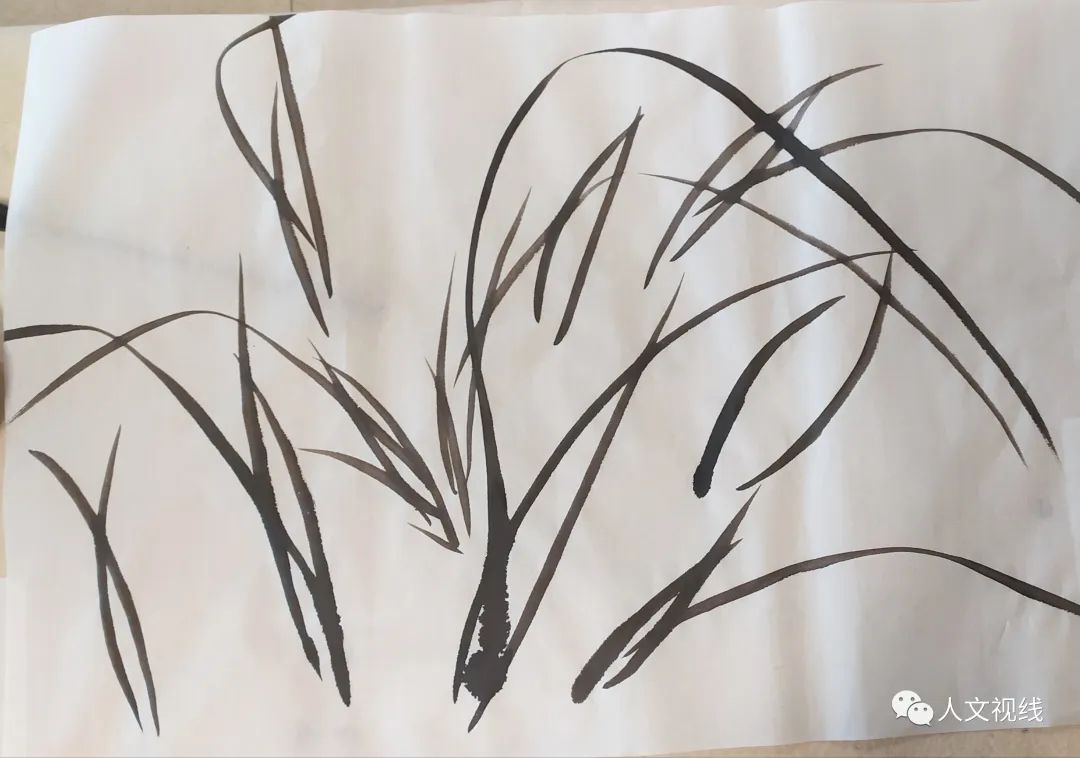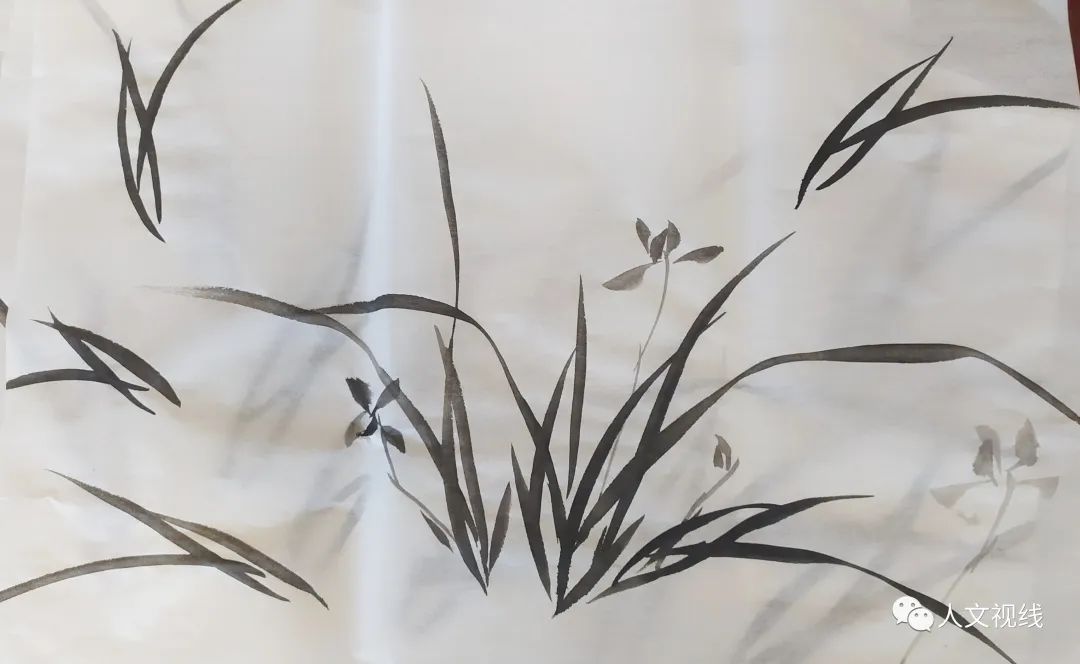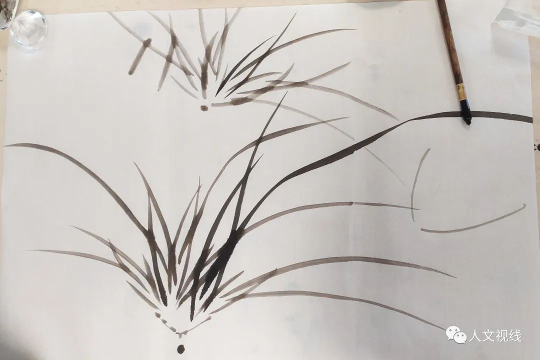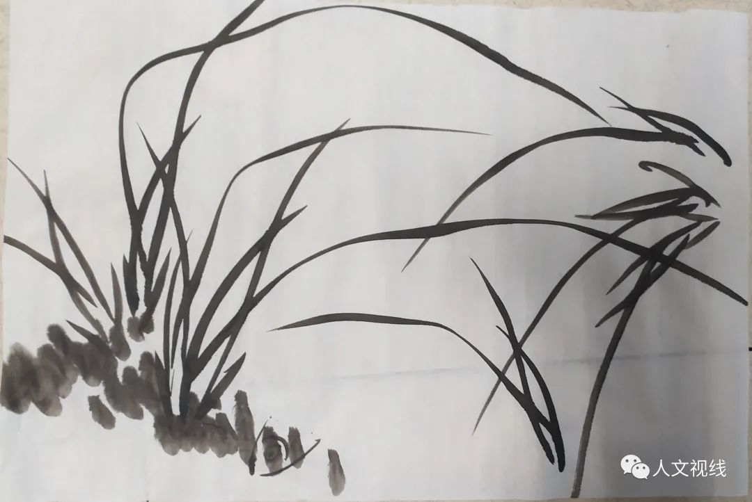 兰叶要有主次,高低,疏密之分。兰茎一般是两三段。兰叶第三笔可以长一点。根部加几个结根。先把三笔画好,然后再进行组合。