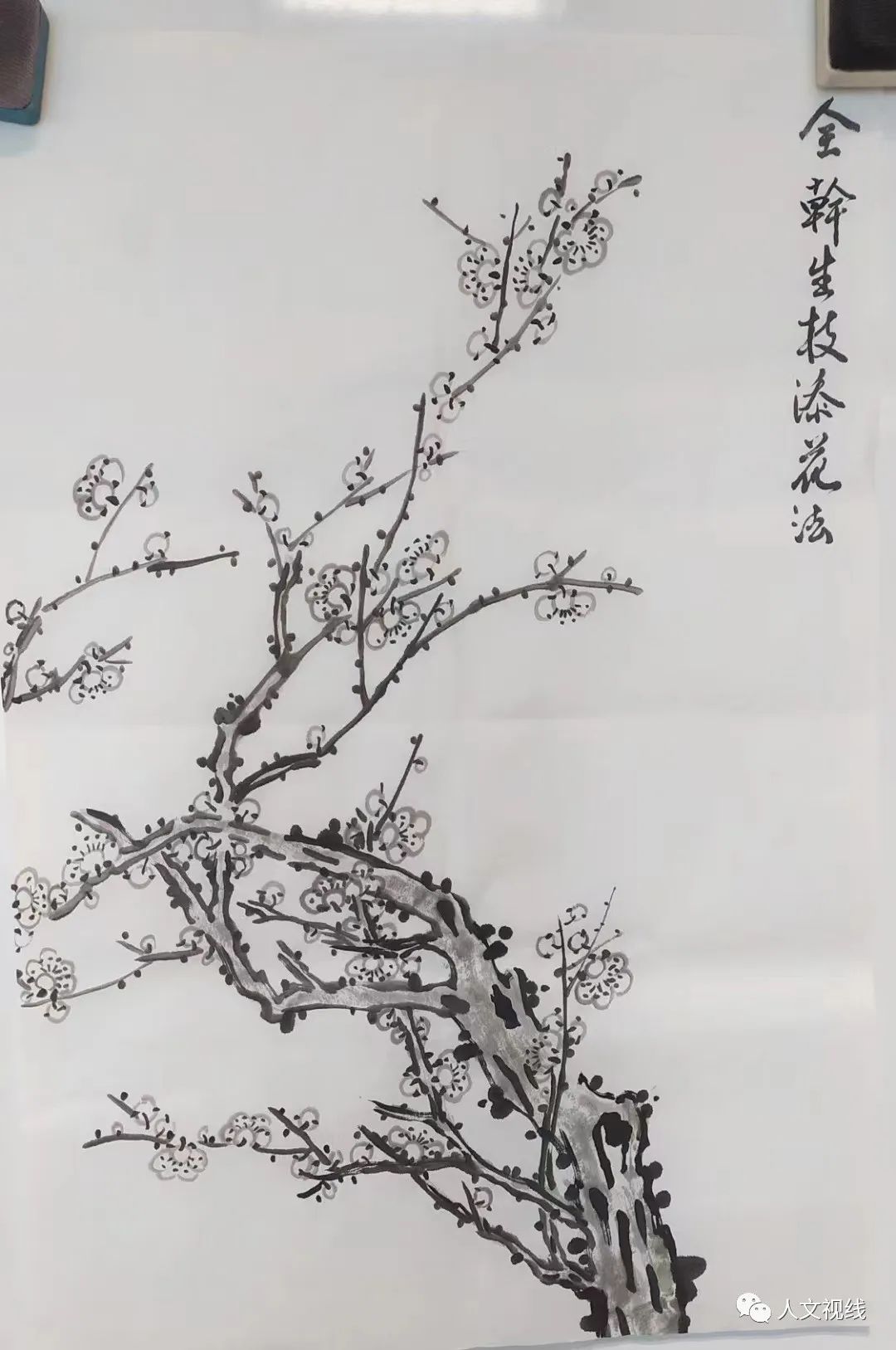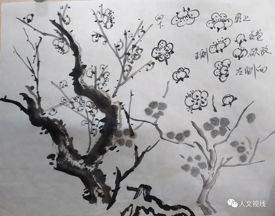 周永江老师教画梅,全干生枝添花法。