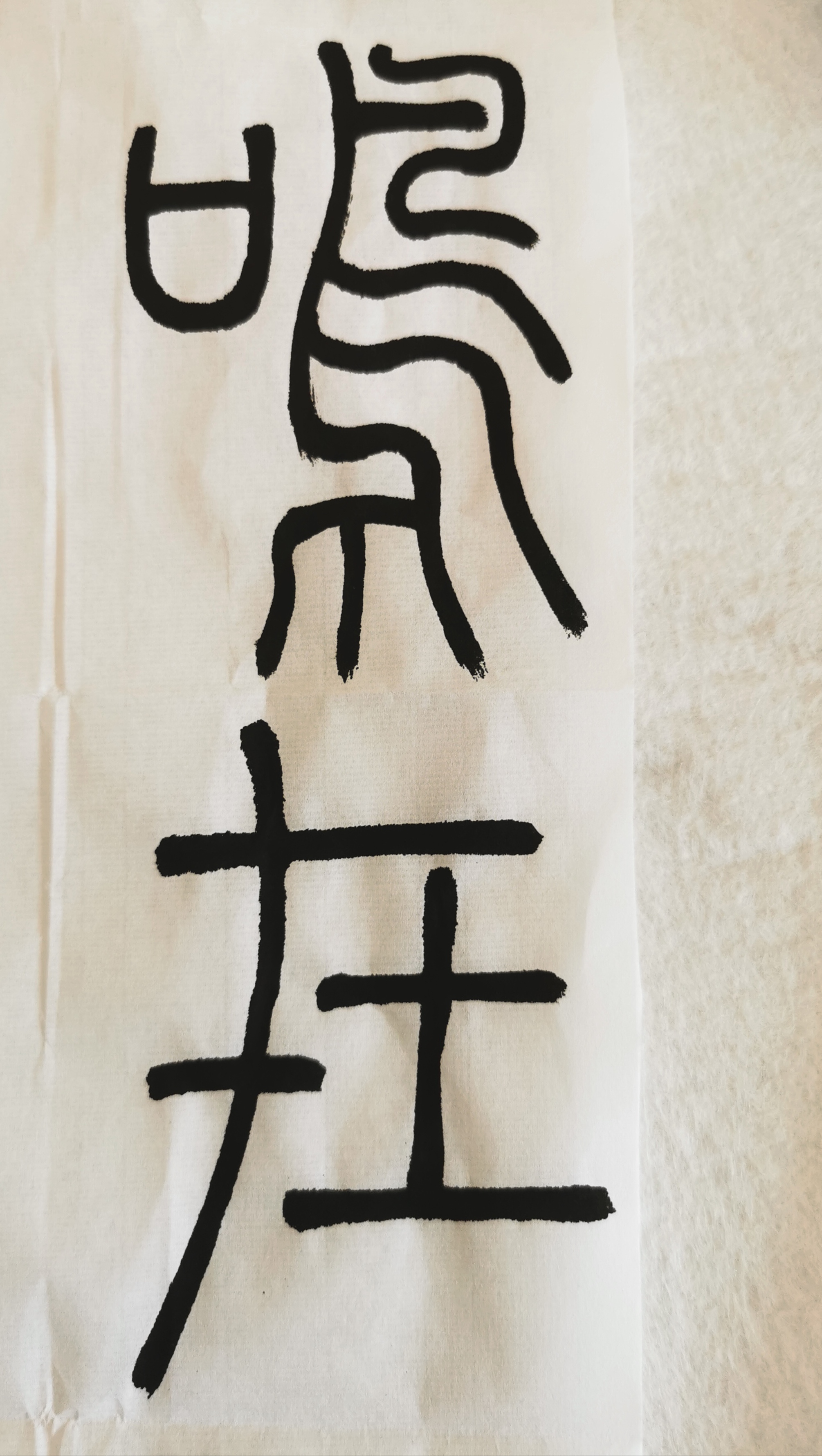 这是我第一次练习篆书。第一次发现篆书很有意思,更像画画,每根线条粗细相同,像棍子。很多字都是对称的。
