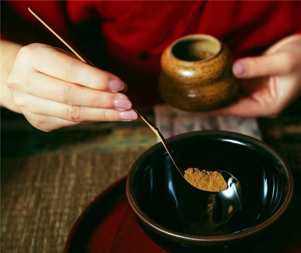 点茶不止是为了好看,还会使茶更好喝。吃茶品饮主要是茶汤的沫饽,这是茶的精华所在。啜一口含在口中,随着气泡破裂,茶香乳香在口腔一齐迸发,使人产生一种“美好而有动感”的享受。