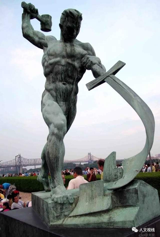 东西方对和平的共同吁求,合成如今全世界通行的一词“铸剑为犁”Beat Swords into Plowshares。青铜雕塑“铸剑为犁”位于纽约联合国总部的花园中。这座青铜雕像是由苏联艺术家叶夫根尼·武切季奇为了纪念第一次世界和平大会的召开而创作,由苏联于1959年赠送给联合国。雕塑底座上铭刻着:We ShallBeat Swords into Plowshares(铸剑为犁)。