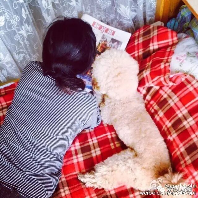 我的狗叫波比(BOBI),是一只贵宾犬,从三个月开始养到现在已经7岁了,也和其他狗一样,看到球就欢呼雀跃蹦达得老高,尾巴摇成小风扇;喜欢草地上狂奔、在沙发上打滚、吃饭的时候早早跑桌子下乖乖坐定开始装可怜卖萌,蜷在沙发上主人腿边一起看书听音乐直到睡着……