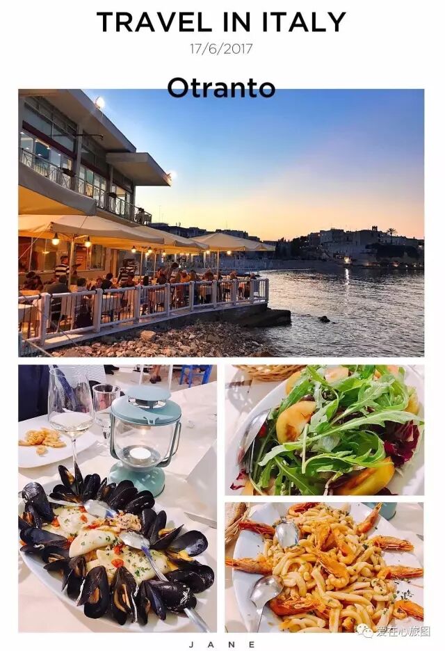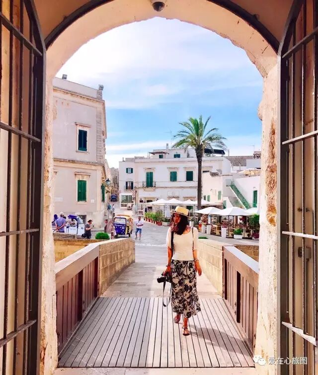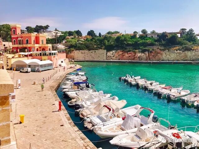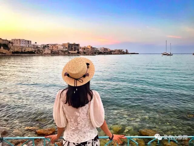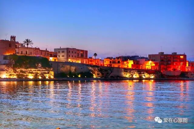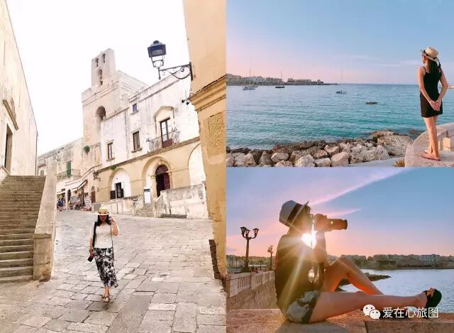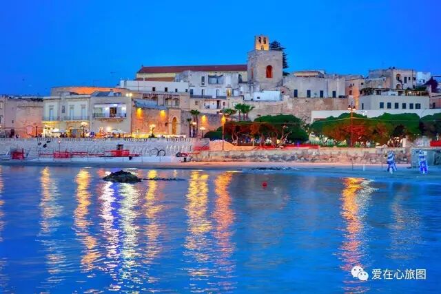 奥特朗托小镇Otranto是奥特朗托海峡萨伦蒂纳半岛的一个意大利古港,夕阳下的Otranto老城被淡淡金色围墙圈了起来,蔚蓝的海天一线,海水清澈得绿透见底,在古堡、老街小巷和海边留下漫步的身影。