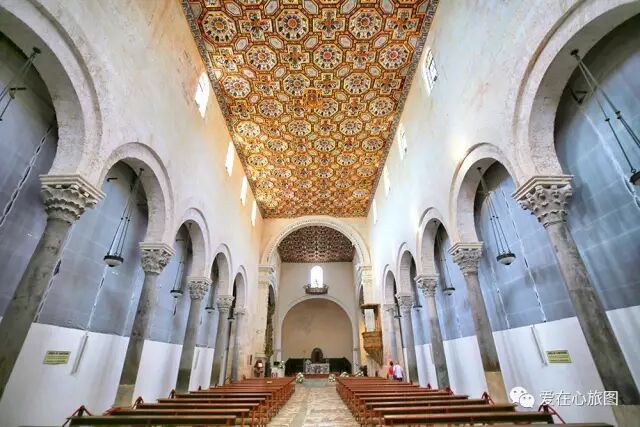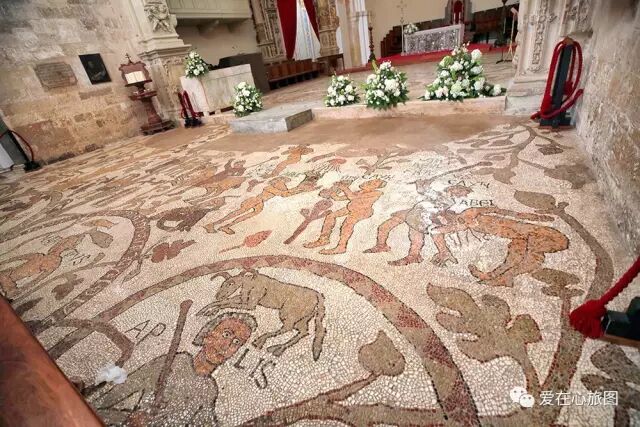 整个教堂地板都是用马赛克艺术手法,一片片的拼成一幅幅12星座的图画故事,这些富历史及宗教色彩的马赛克地板,是十二世纪由一个修道士主持建造。