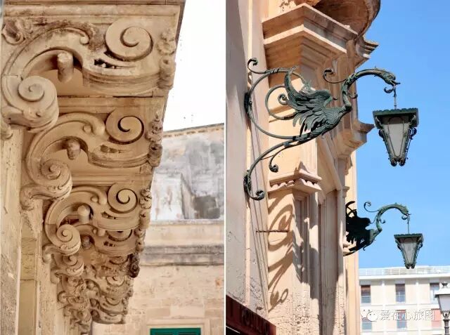因盛产巴洛克雕刻主材“莱切石”,这里的巴洛克建筑也多得惊人,被称为“巴洛克艺术之城”、“南方的佛罗伦萨”。因为石质较柔软,可以雕刻出非常细腻丰富的花纹和形象,这些雕像有动物有人神也有花纹,形态神态各异,仔细观察非常有趣。