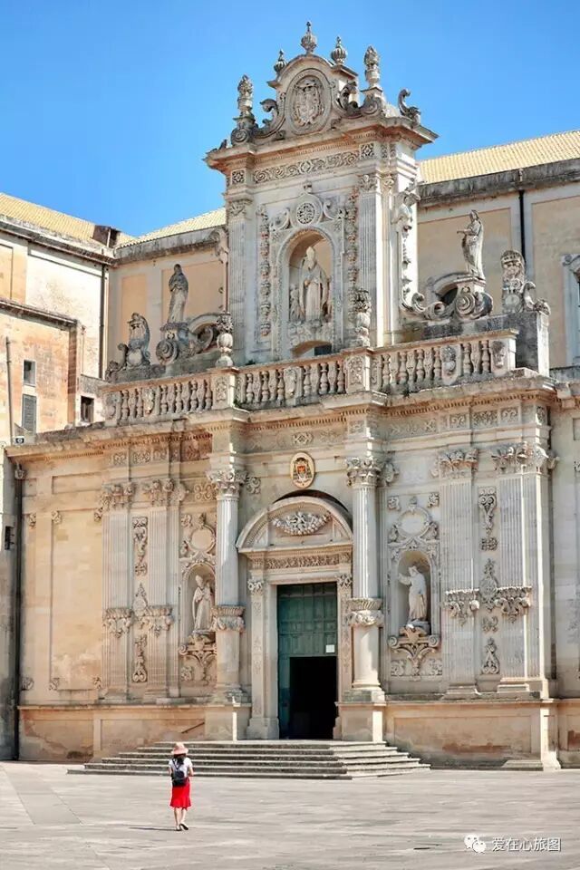 广场左侧的钟楼是1661-1682之间由建筑师莱切Giuseppe Zimbalo建造,72米的高度作为背景显得十分有意境,也是拍婚纱照的圣地。