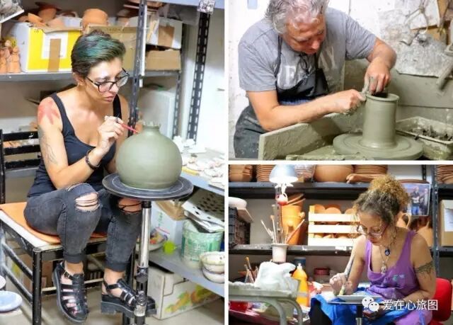 这些精致的陶艺品都是从当地传统手工艺中寻找创作灵感,以当代艺术眼光与手法表现出来,再通过手工拉胚和彩绘烧制出来,工作室在店面里面,往里走还能看到他们的工作现场。
