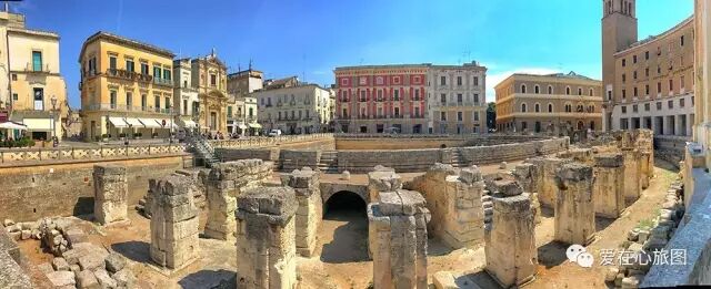 Amphitheatre Romano ( Roman Theatre )是古罗马时期留下来的剧场,圆形剧场从罗马时期能保全至今日这么完整,十分难得,右侧是游客中心及Lecce较新的建筑。
