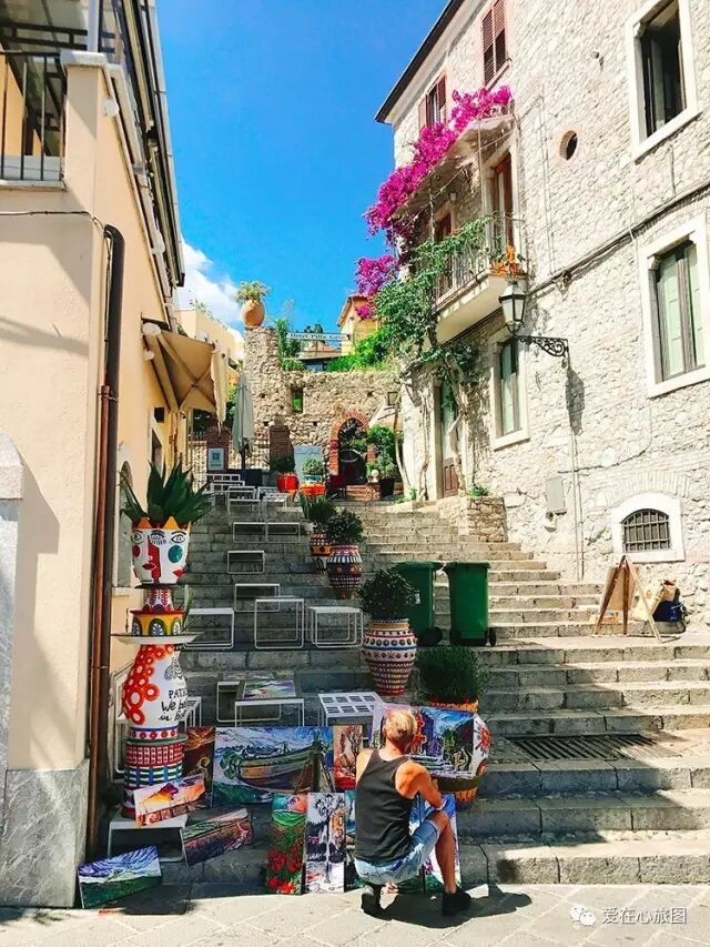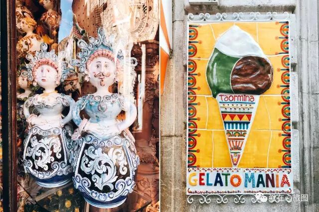 缤纷色彩的小镇陶尔米纳,可以买到很多当地出名的手工艺或马赛克陶瓷品,连冰激凌店门口的招牌都可以用陶瓷艺术来表现,不得不服!