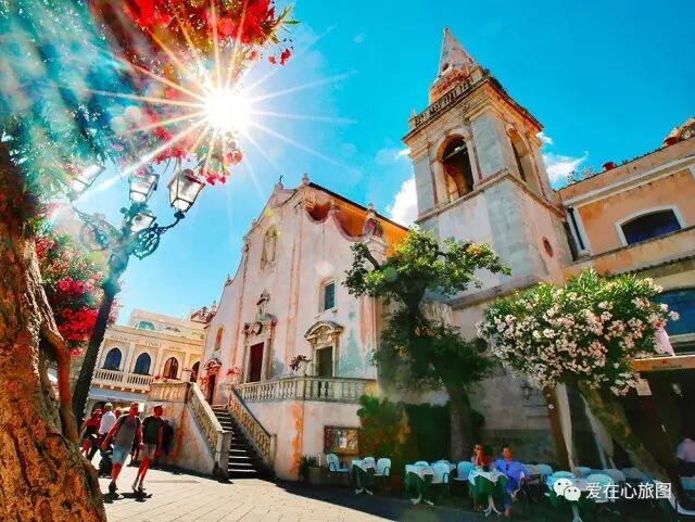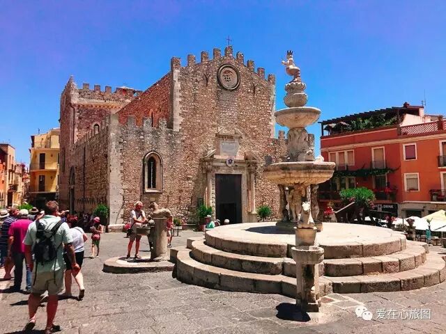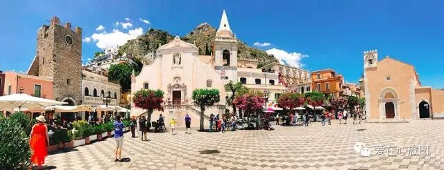 陶尔米纳镇中心的广场Piazza Belvedere,旁边有个观景台可以看到Naxos海岸线