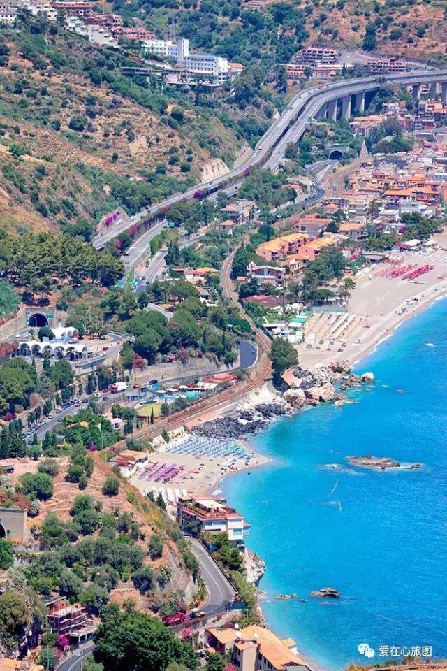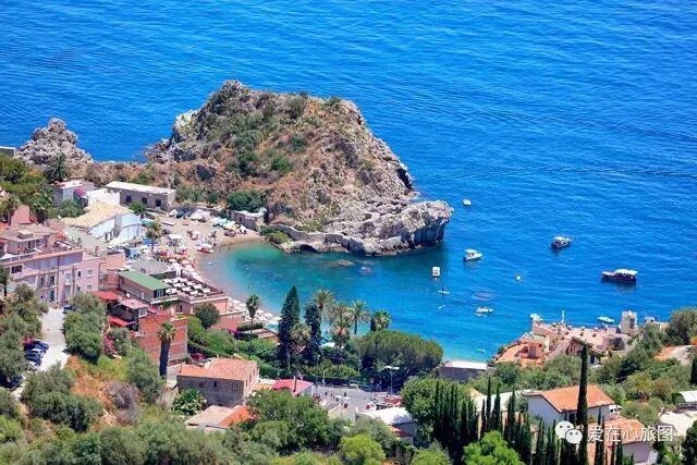 远处的巨石是陶尔米纳最知名的石滩Isola Bella