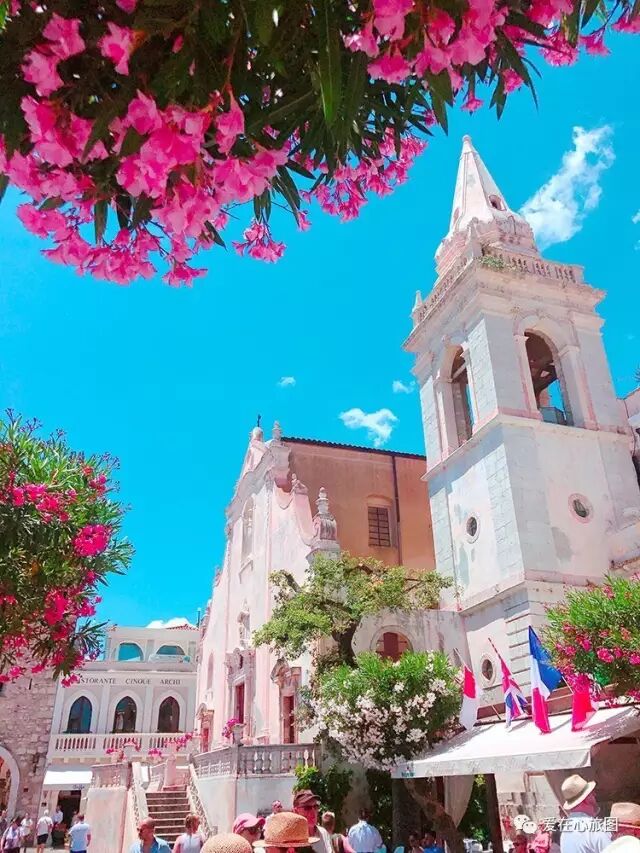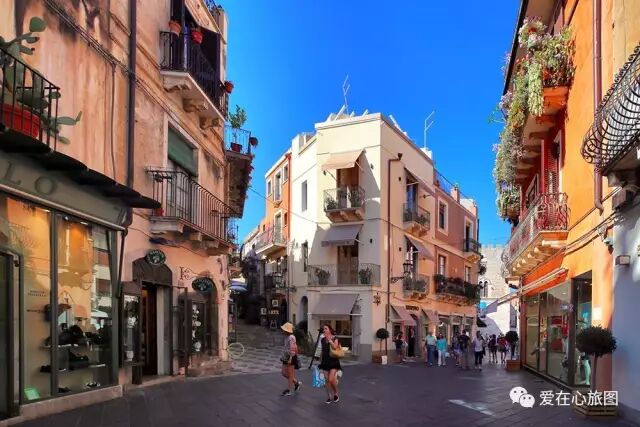 陶尔米纳Taormina是西西里岛上的一个特别精致的历史古城,街道两侧,每座小楼都精美无比,楼顶、屋沿、窗棂、门楣、阳台、护栏,雅致细巧华美,而细节各异,精彩纷呈。