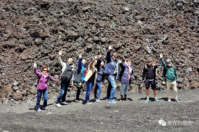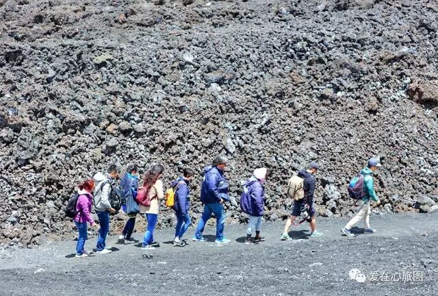 海拔一千多公尺高的火山上即使是夏天也会低温寒冷,遇到阴天会更加觉得阴冷,路滑难行,这天的行程是需要大家备妥御寒衣物,如果没带也可以在缆车到达处租棉服(3欧/件)大概的样子就是合影中最右两女生穿的款式😏