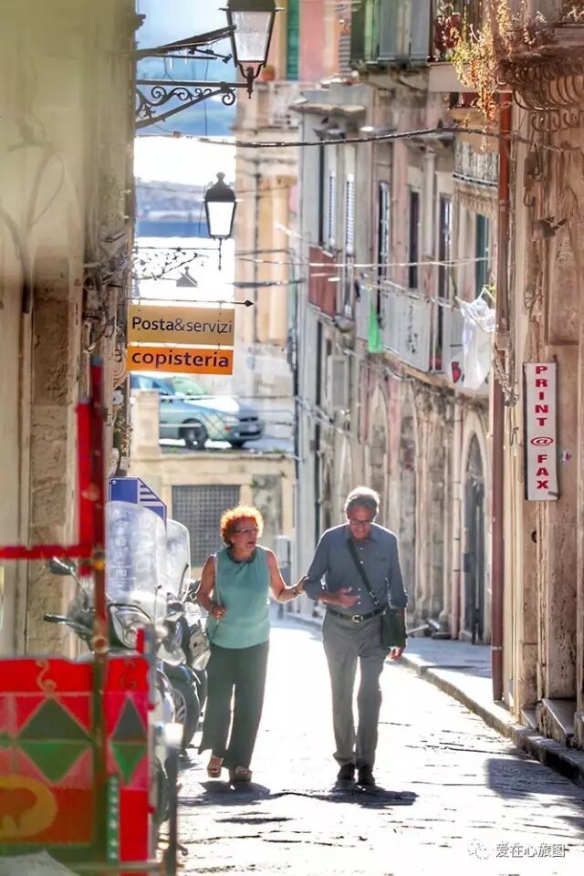 锡拉库萨不只有玛莲娜走过的主教堂广场,广场所在半岛上的每一条小巷都是寻幽探秘的地方,阳光的小镇也在光影中留下浪漫瞬间,牵手前行的恩爱夫妻的画面,让人更加过目不忘,这样才是现实版的在一起越老越幸福的生活写照。