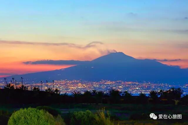 灯火阑珊下的埃特纳火山非常壮美,成为了这个城市的标志,“浴火重生”也象征着这个城市不朽的精神。