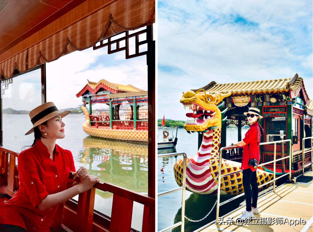 湖面微风拂面,波光粼粼,让人心情舒缓和悠扬,乘坐龙船游览才是雁栖湖最好的打开方式。