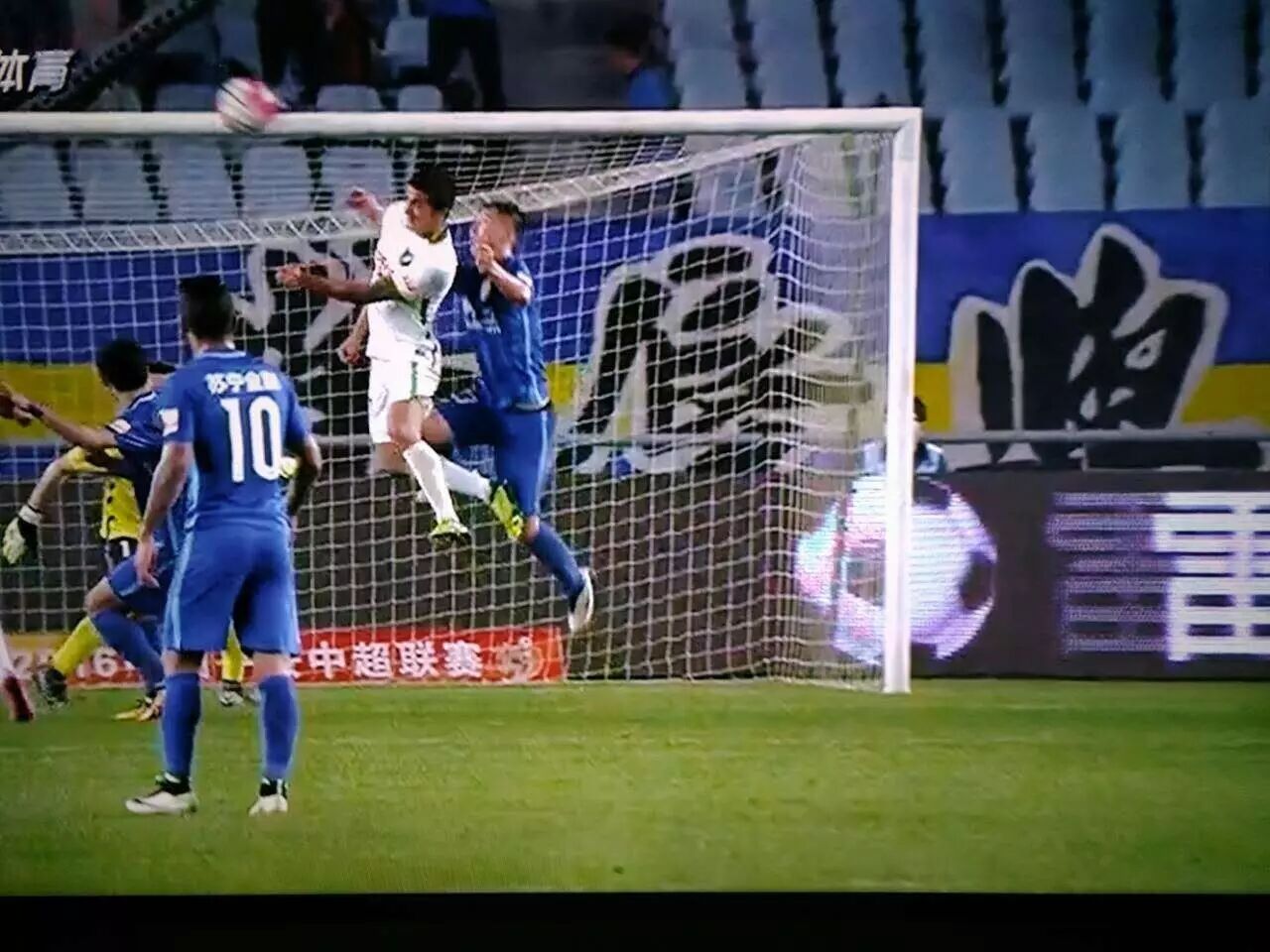 一,卡希尔同志在比赛的最后时刻跃起头球,将球顶进了江苏苏宁队的大门。