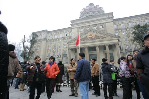 高院外早早的就有市民等待进入旁听 记者 徐元宾 摄