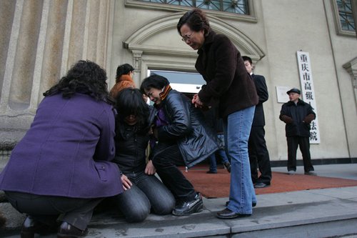 邹鸿成母亲瘫软在高院法庭外 记者 徐元宾 摄