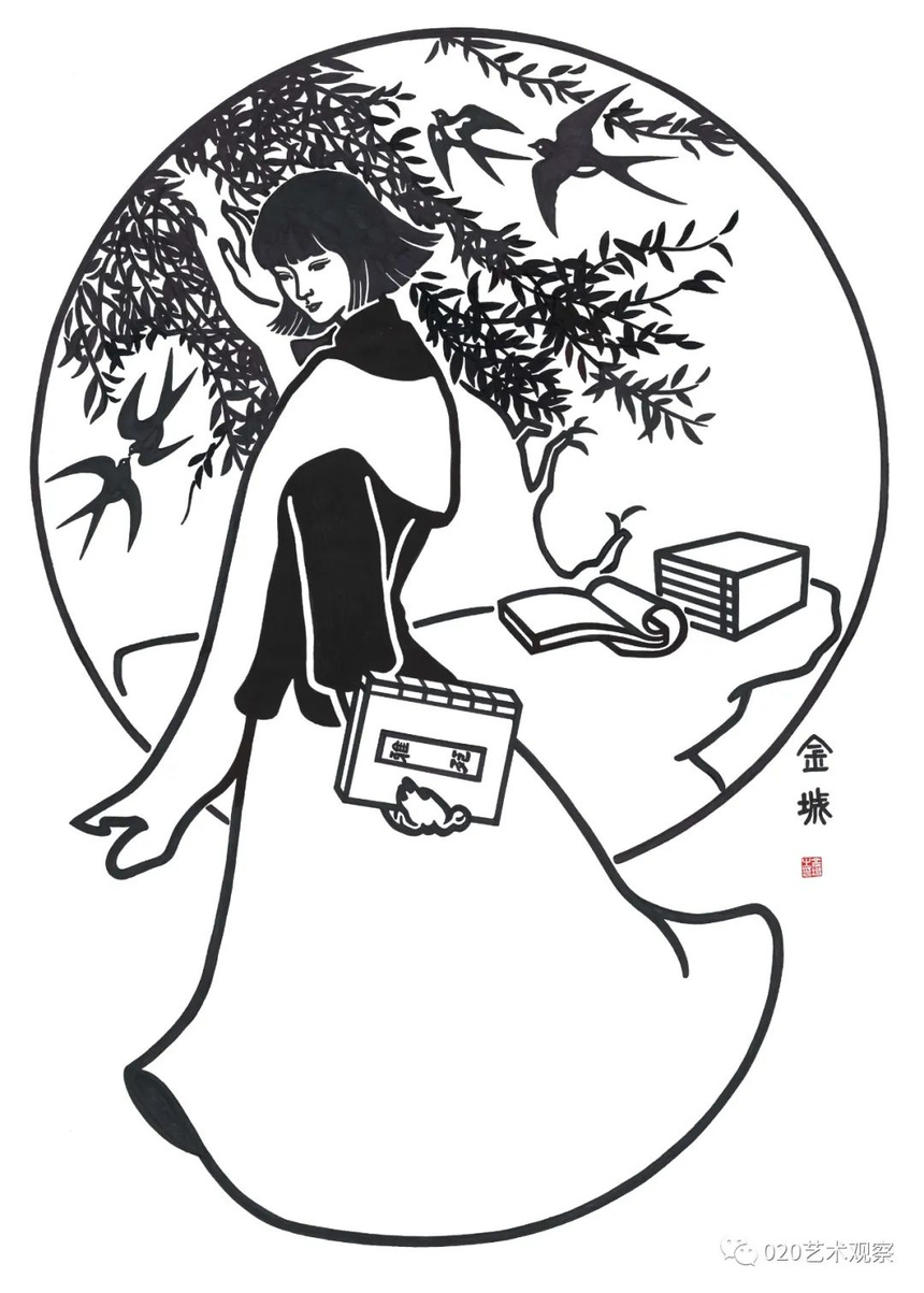 2020年新冠疫情期间,他三个月足未出户,创作出《极简少女》系列作品,简约时尚的人物造型,惜墨如金的画面留白,给人留下无限遐想空间。同样是从传统线描而来,金城的线条不仅仅写意,同时承载了塑形的使命,形成独具特色的艺术语言。他巧妙借鉴当下潮流文化,将作品进行“动态化”制作,突破了传统纸本绘画的局限,让人重新认识“线”的生命与活力,形成东西方审美中相得益彰的融合效果。