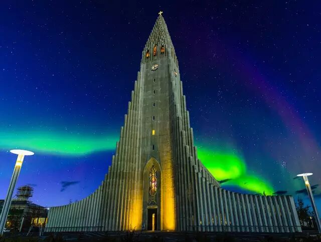 单纯的拍摄极光,只能成为素材,如果有个有趣的前景和水面,那就可以成为作品了。水中的倒影,还可以放大画面的美丽。所以,极光拍摄,拍摄场景的选择和构图很重要。灯塔是在雷克雅未克的郊区,水面是冰河湖。