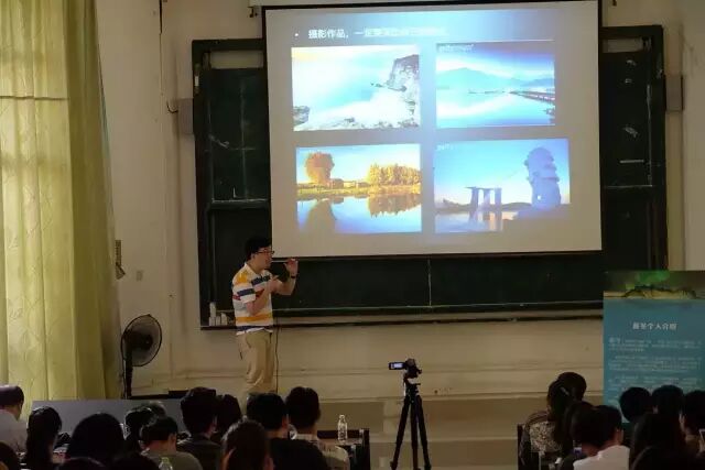 讲座开始之前,广西民族大学的校友、就业指导老师、知名企业家,也是飞侠学生和视觉中国的签约摄影师,黄国浩先生也和广大学生分享了自己学习摄影的收获,向大家说明了摄影对大学生求职就业的重要性。