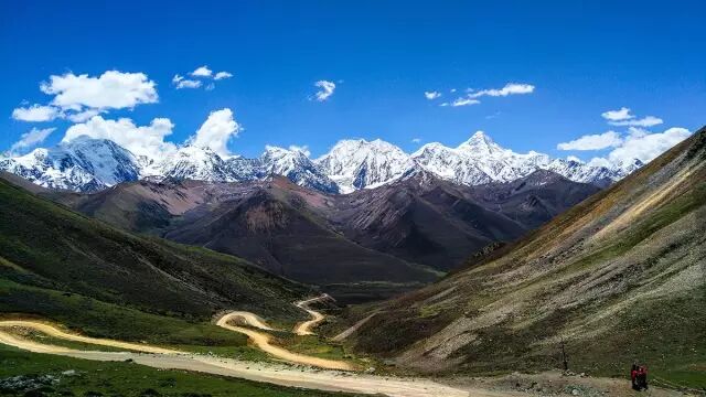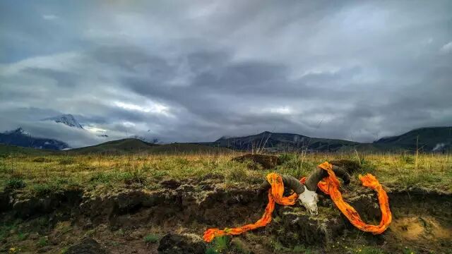 这是一个人迹罕至的地方,格聂神山和喀麦隆神山,宛如巨人,陪着我们。