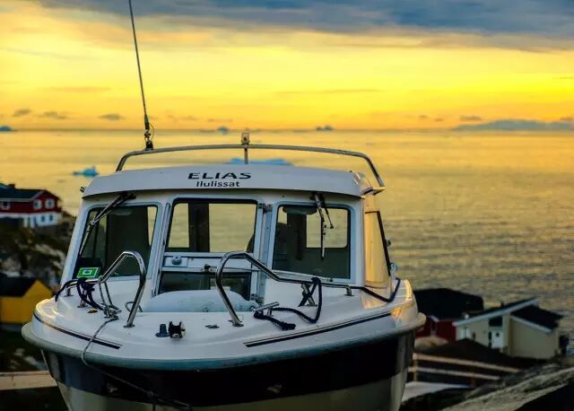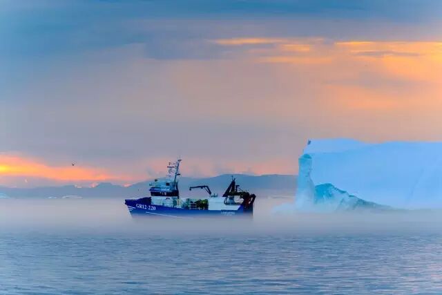 天边,绚丽的夕阳,永不落下,散发着柔暖的光辉。站在山顶,沐浴着极昼的柔光,看着冰川和渔船,心沉浸在惬意的温情中。起航,穿越冰川,远方就是希望。