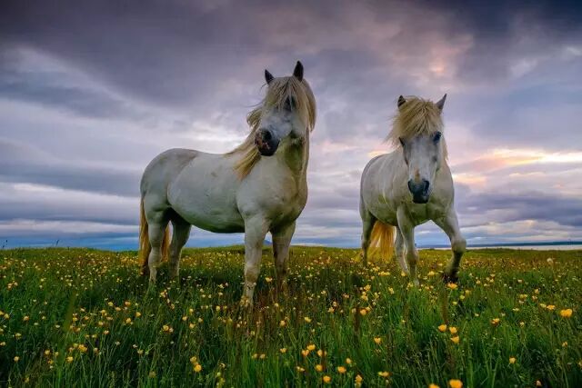 夏天的冰岛,是动物的天堂。有可爱的国鸟海鹦PUFFIN,还有午夜花丛中的冰岛马。