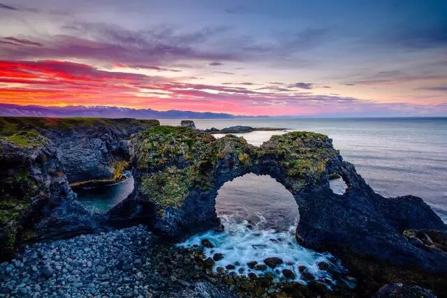 夏日的冰岛,降雨相对比较多,雨后的傍晚,就又是彩虹和红霞的天下。