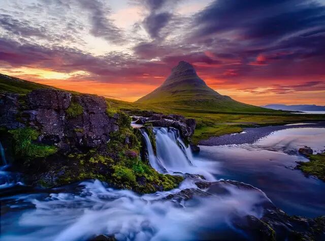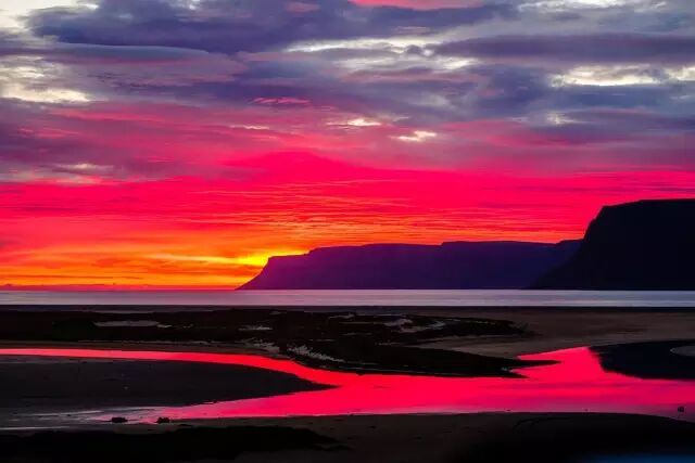 夏日冰岛的一个最大特点,就是不落的太阳,漫天的红霞!简直是没法睡觉,太阳才落下去,就又开始升起来了。但可以尽情的拍摄,一次拍个够!