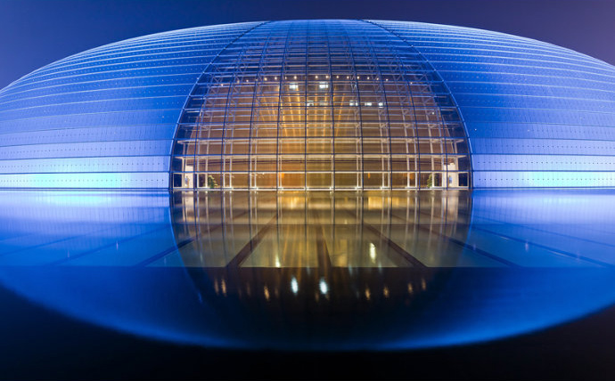 F13,10秒。使用CPL强化水面的倒影。国家大剧院
