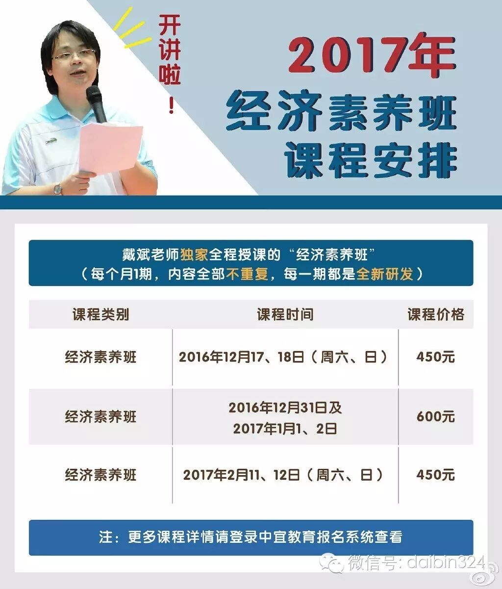 【最新一期的经济素养班,上课时间在2016年12月31日及2017年1月1、2日(元旦假期),请统一使用中宜教育的网络报名系统:http://i.yourhr.com.cn/进行预报名】