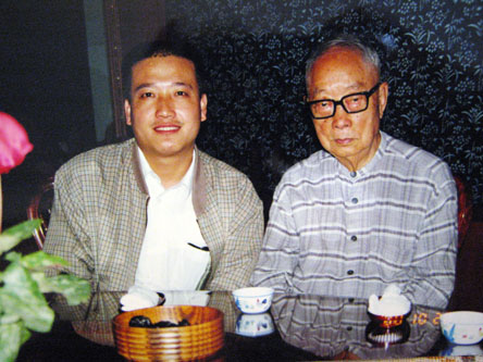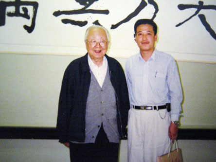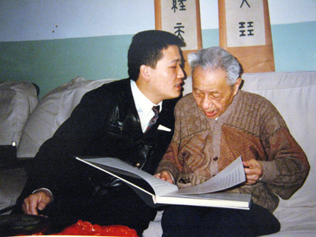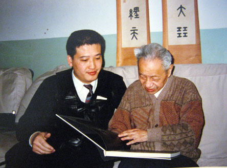 崔自默与文物鉴定专家启功先生(1997年9月21日,中国美术馆)