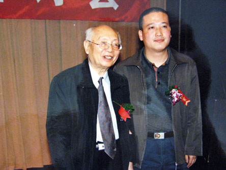 崔自默与中央美术学院院长潘公恺教授(2000.10.28,杭州,西湖博览会上)