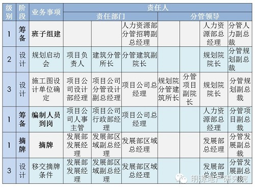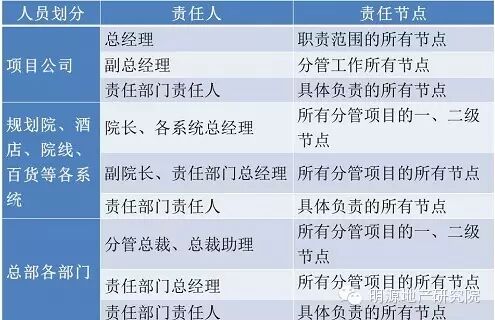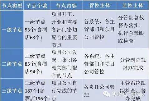 为保障进度目标的达成,严考核是一种有效的驱动方式,为此,基于计划模板权责矩阵,万达明确了集团及项目公司层面各责任主体需要负责的节点,如下: