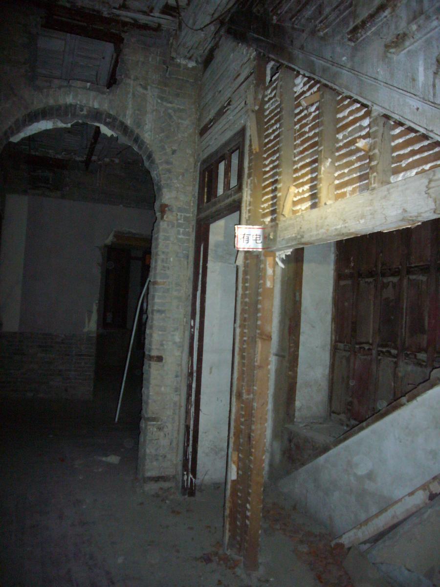 夜幕到来,由于没有灯。伸手不见五指我们便打着手电探索东楼如果不是白天来过晚上一定更害怕。夜晚里面的气氛异常凝重。