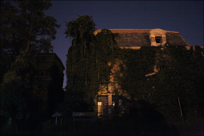 在等待夜幕降临的时间里我遇到了一伙来鬼宅拍杂志照片的年轻人。他们还拿了楼上的小熊。