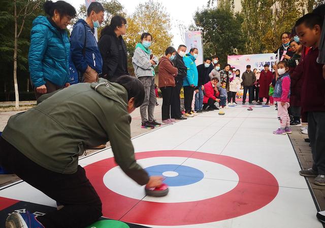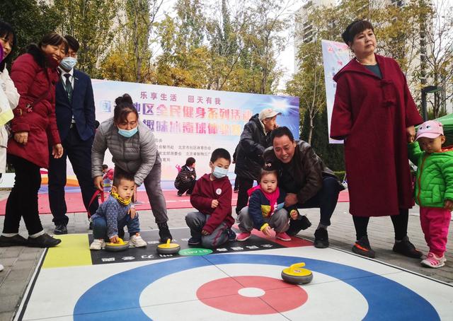 10月27日,回天地区全民健身系列活动家庭趣味冰壶球体验赛在回龙观街道融泽家园一区举行。