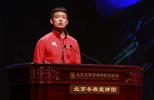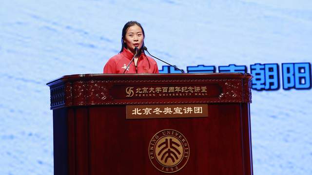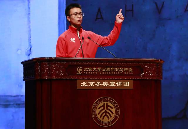 北京大学专场宣讲会是系列宣讲活动第一季的最后一场。北京冬奥组委新闻宣传部工作人员首先介绍北京2022年冬奥会和冬残奥会筹办工作整体情况。随后,8名宣讲员进行了宣讲。他们中有自由式滑雪空中技巧世界冠军郭丹丹、有参加过平昌冬奥会闭幕式北京文艺演出的轮滑演员郭露阳、有北京市朝阳区业余体校的高山滑雪运动员张丁月、有北京积水潭医院医生孙旭、有东城区回民小学教师郝涛、有志愿者代表、冬奥组委新闻宣传部工作人员刘晨、有到访过所有奥运举办城市的奥林匹克文化推广人侯琨、还有第9届残奥会冠军刘玉坤。他们来自平凡创造不凡的奥运经历,真挚而又朴实的奥运情怀,让现场学生深受鼓舞,赢得了同学们的阵阵掌声。