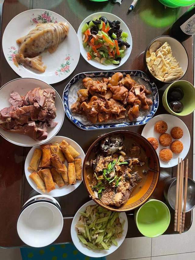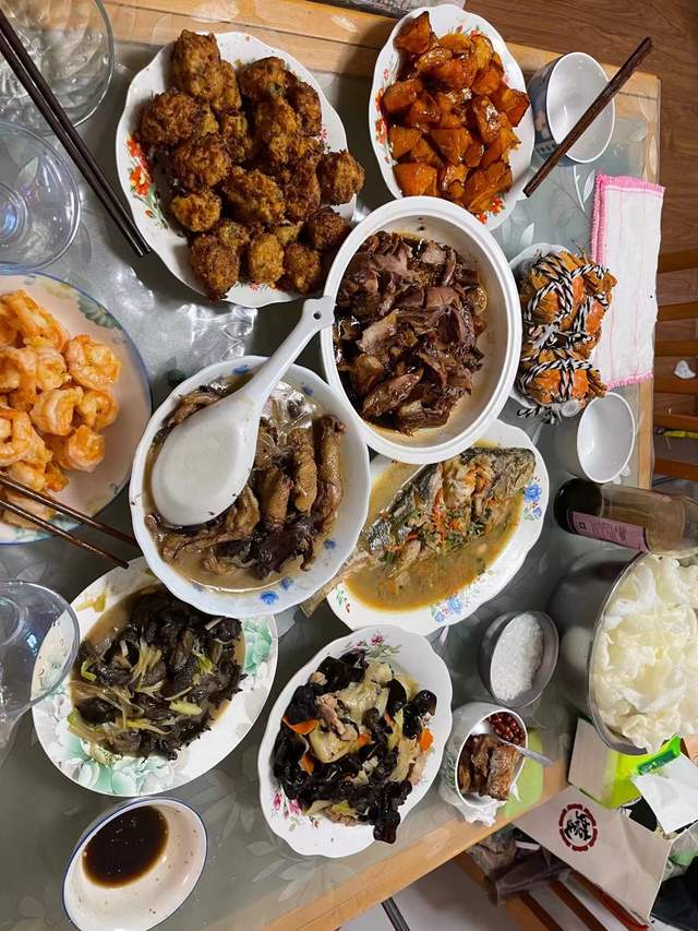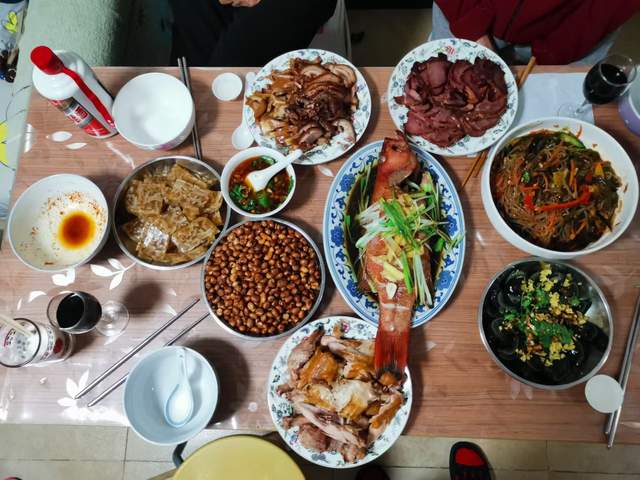 在我的老家东北,年夜饭通常是家中一年内最丰盛的一顿饭,必须要在年三十当天掌厨做出来。满桌的酒菜中必须要有鱼,表示新的一年有余钱、余粮,一切都很宽裕。还必须有一碗红烧丸子,表示阖家团圆。关东老百姓始终有“穷过年,富过年,不吃饺子没过年”的说法。在东北的许多农家,年夜饭前放鞭炮,吃饺子等。但由于年夜饭的吃喝已不重要了,而在于那份人与人之间的温馨,它温暖在一家人的问候和温情中。既有对即将逝去的旧岁有留恋之情,也有对即将到来的新年怀有希望之意。”