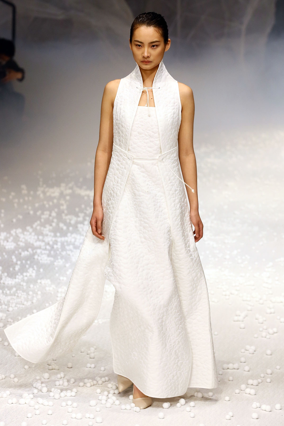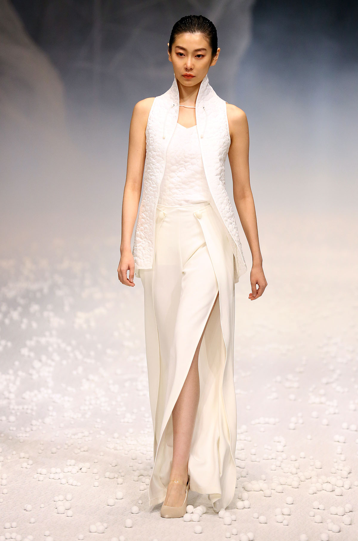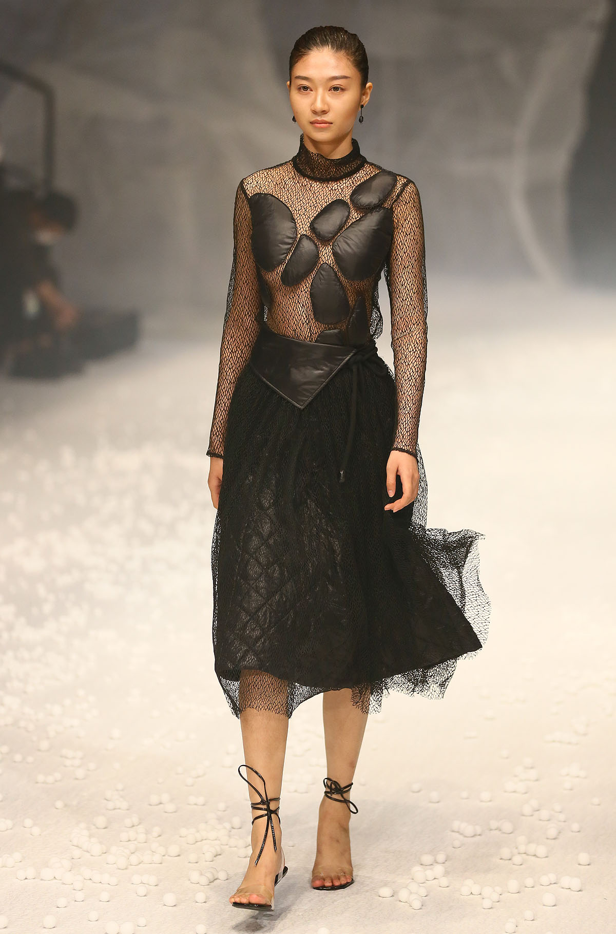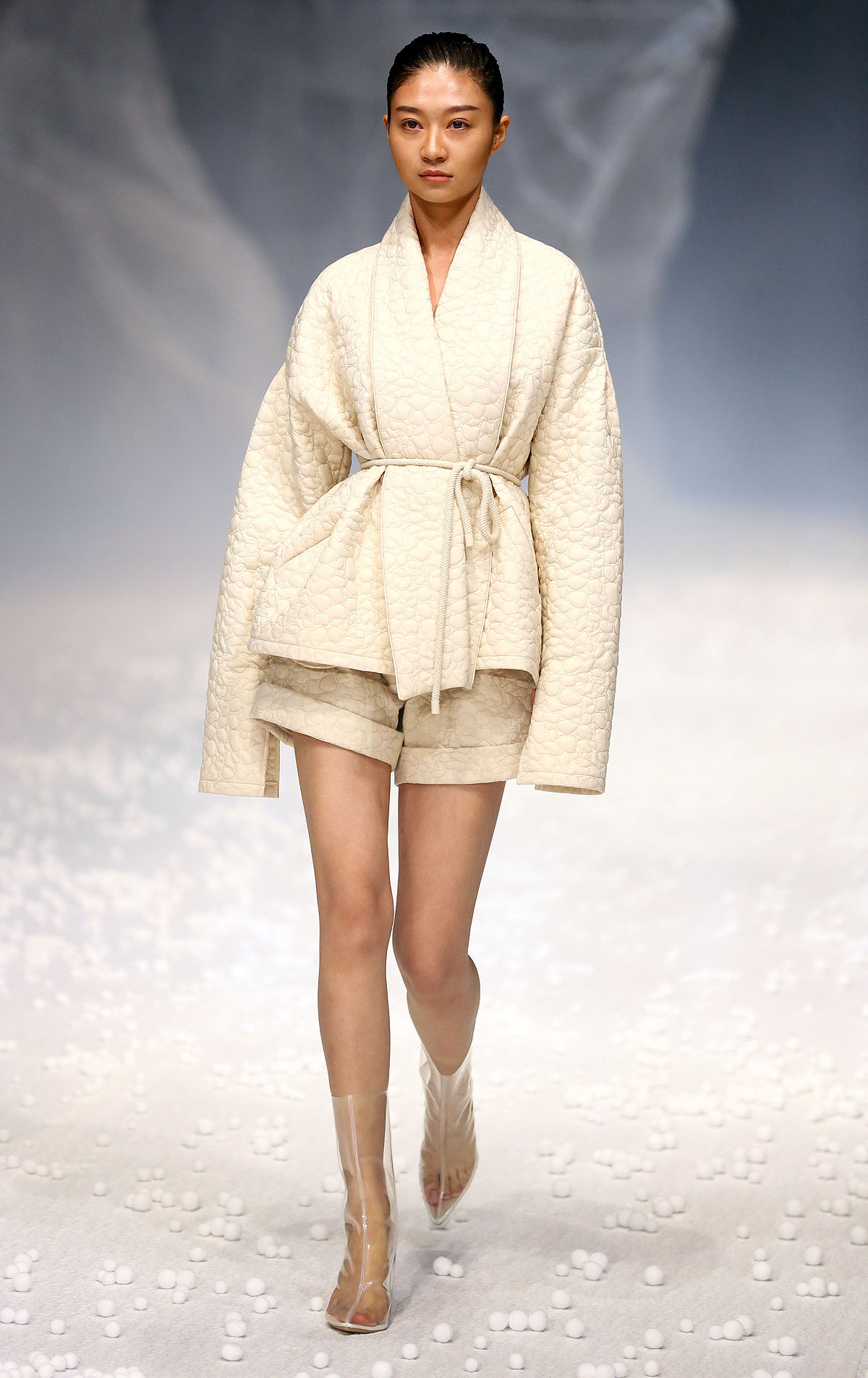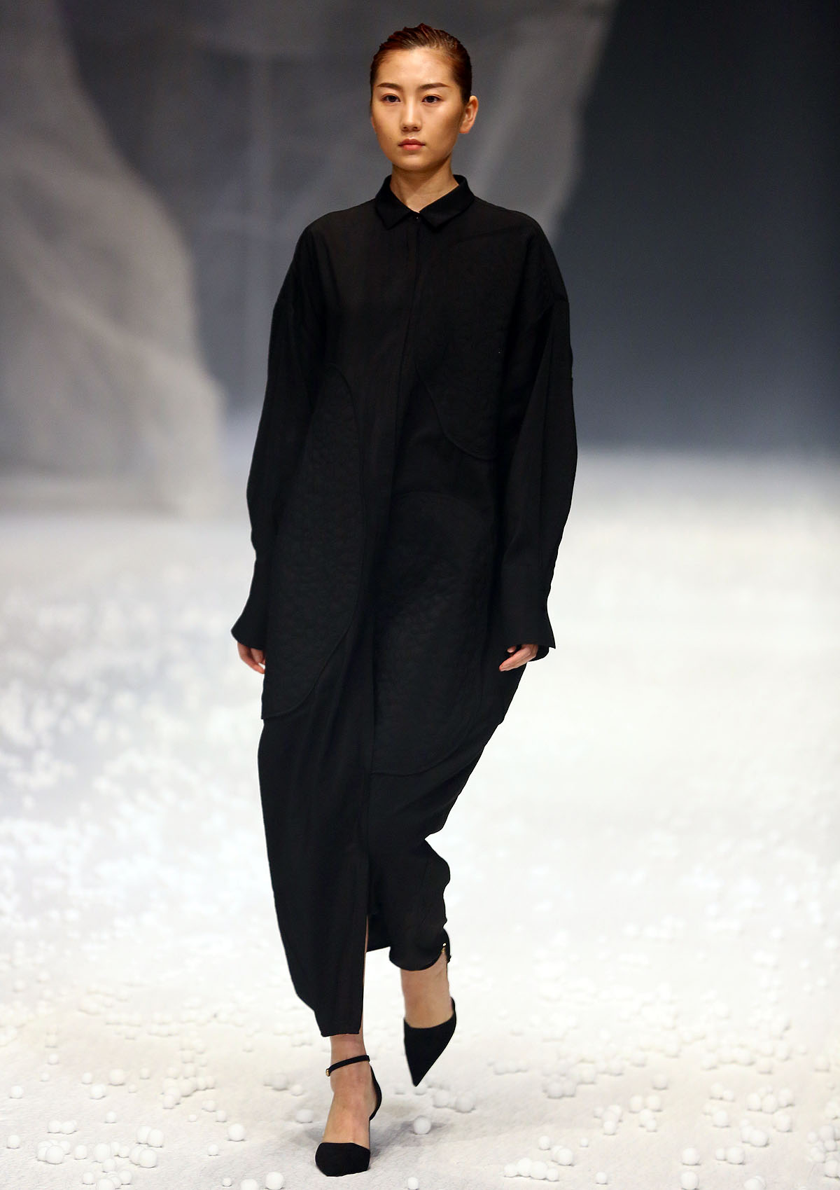 除了用材及设计“羽”众不同,在视觉体验上,设计师以白色为基础色,以大地色、浅驼色为点缀,以黑色为辅助,干净纯粹,简单分明。据设计师介绍,此次发布会主题,灵感来源于自然界中看似统一但形态各异的石头,强调对度的把握,追崇时时处处、恰到好处的意境。【采写:戚连民 摄影:戚连民】