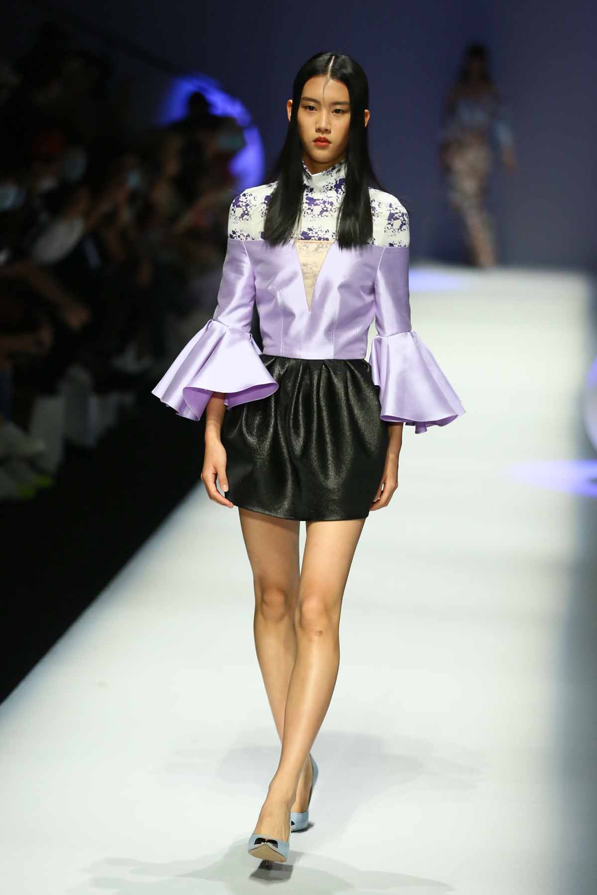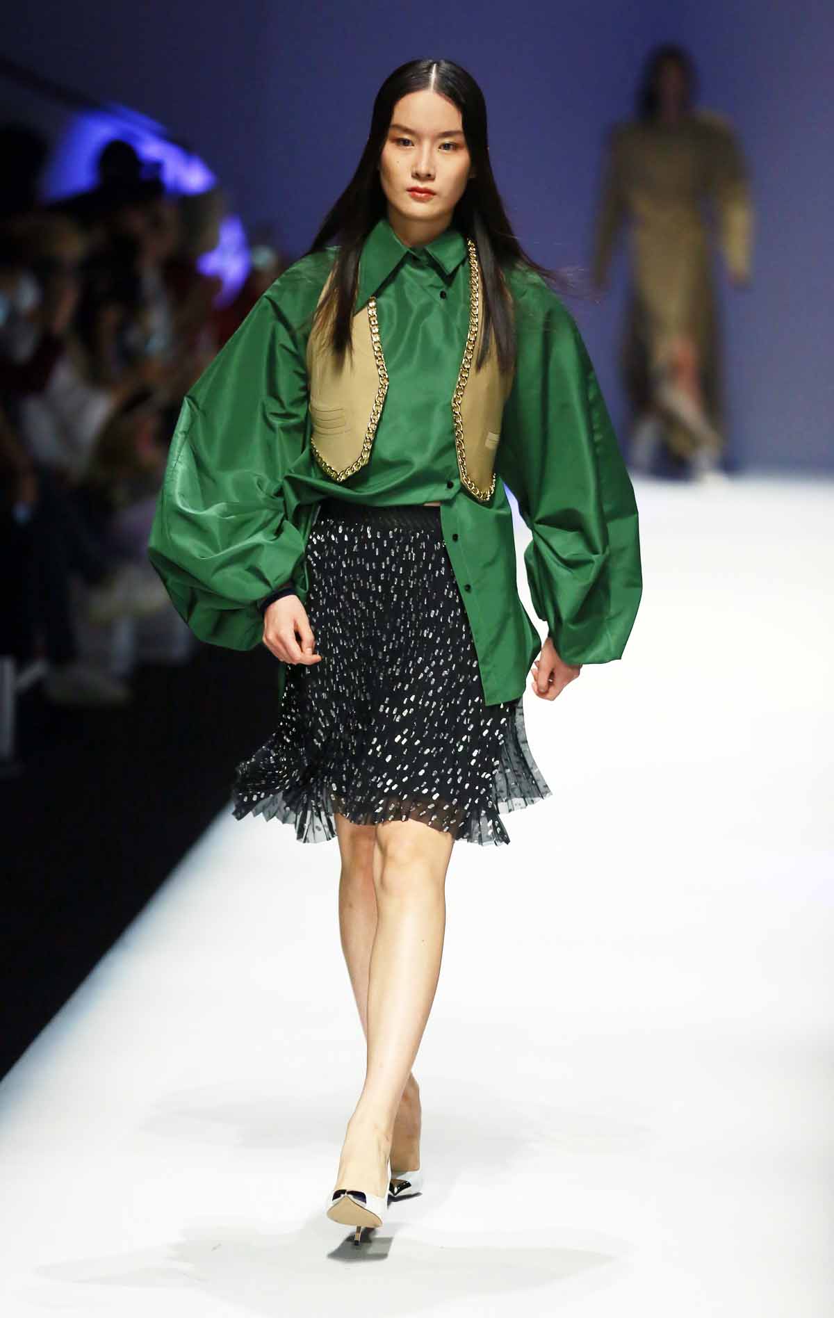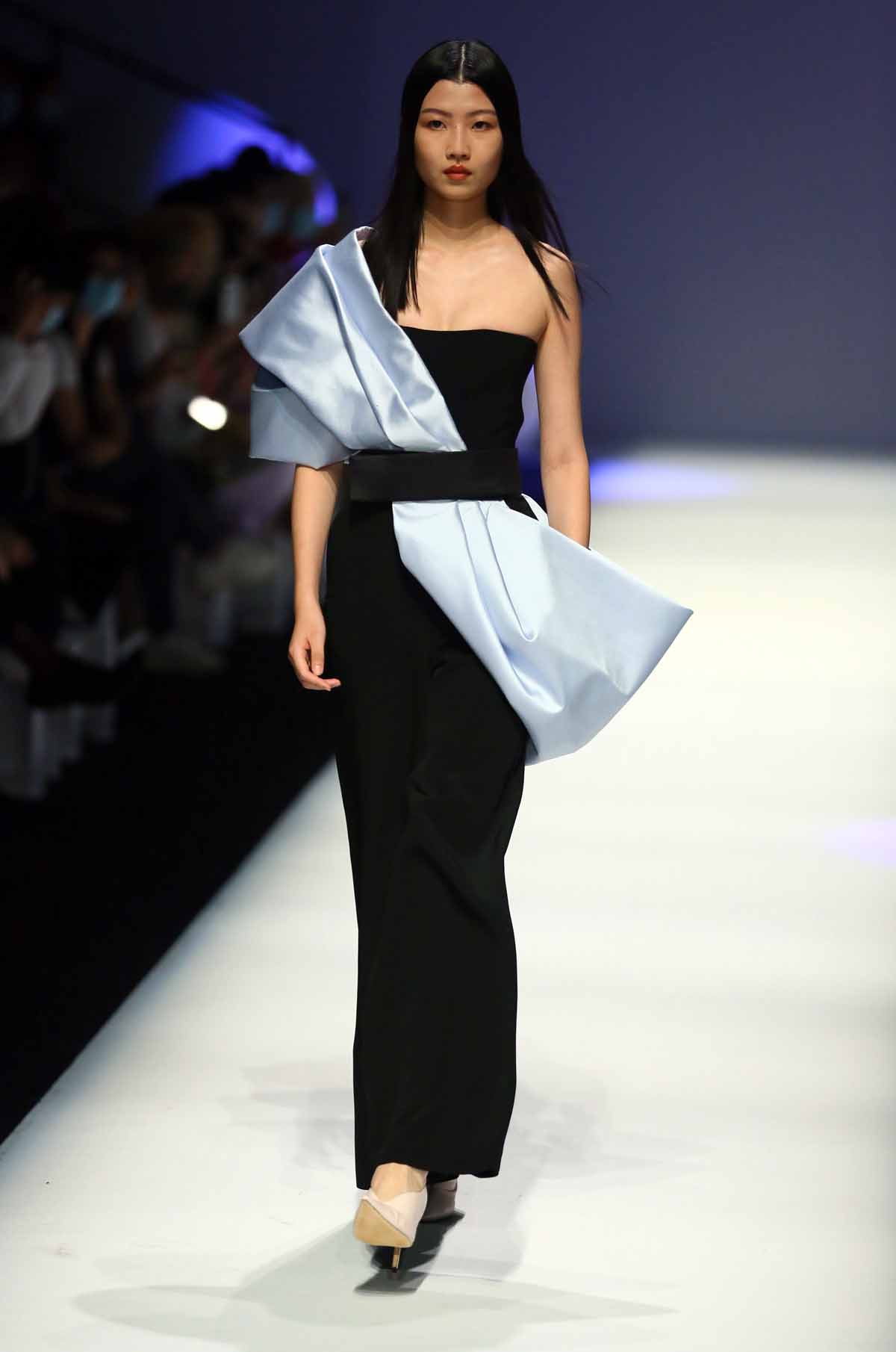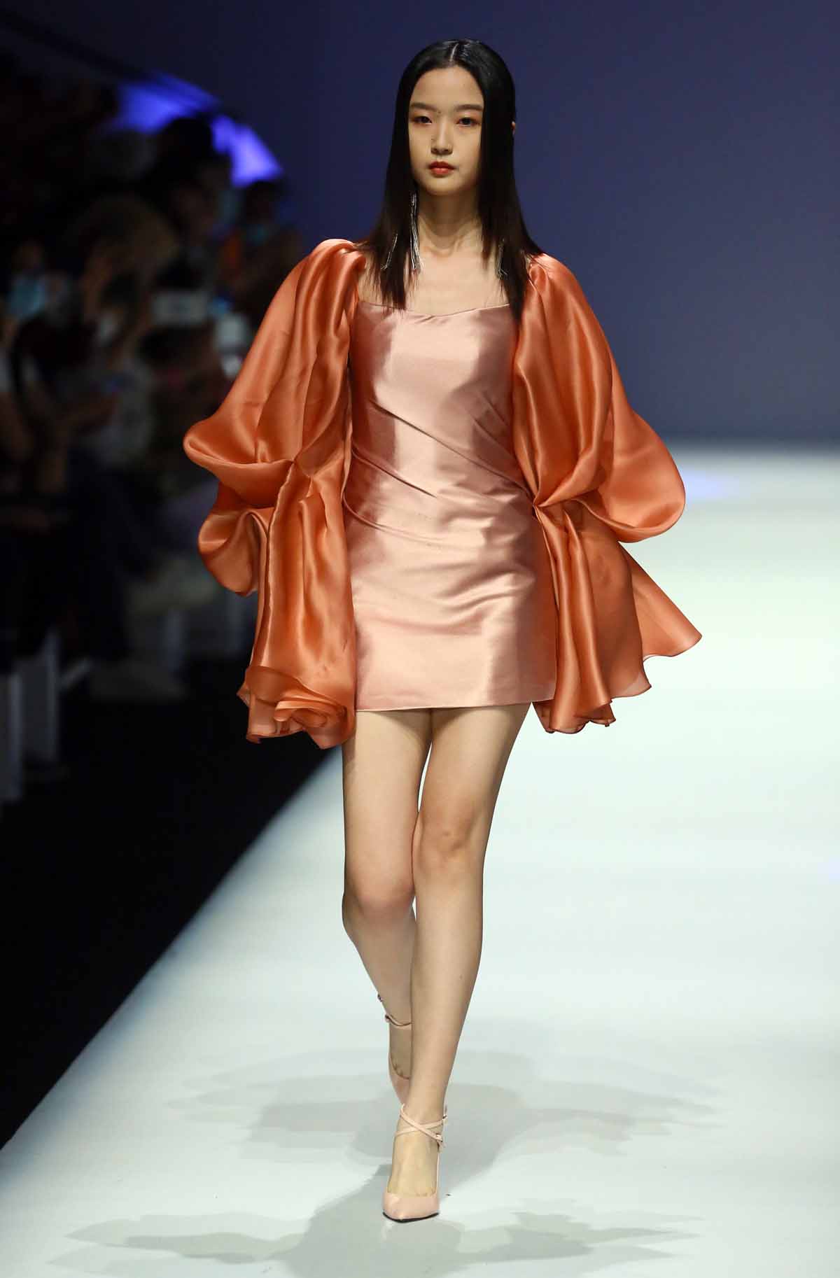 以往的邓兆萍,更像一个文化的推广大使,肩负将文化发扬光大的重任,同时又身兼“科技、创新、时尚三位一体”践行者的荣光,我们很难透过这些“坚硬”的命题去窥见真实的邓兆萍,正是这种“天然的屏障”让观众和设计师之间少了一些“亲昵”地互动。2021年疫情反复、暴雨突袭都让创作思潮开始真正抚慰大众的心灵,邓兆萍也不例外,用力打破常规,与消费者无间互动,是本季最大的前进。【采写:戚连民 摄影:戚连民】